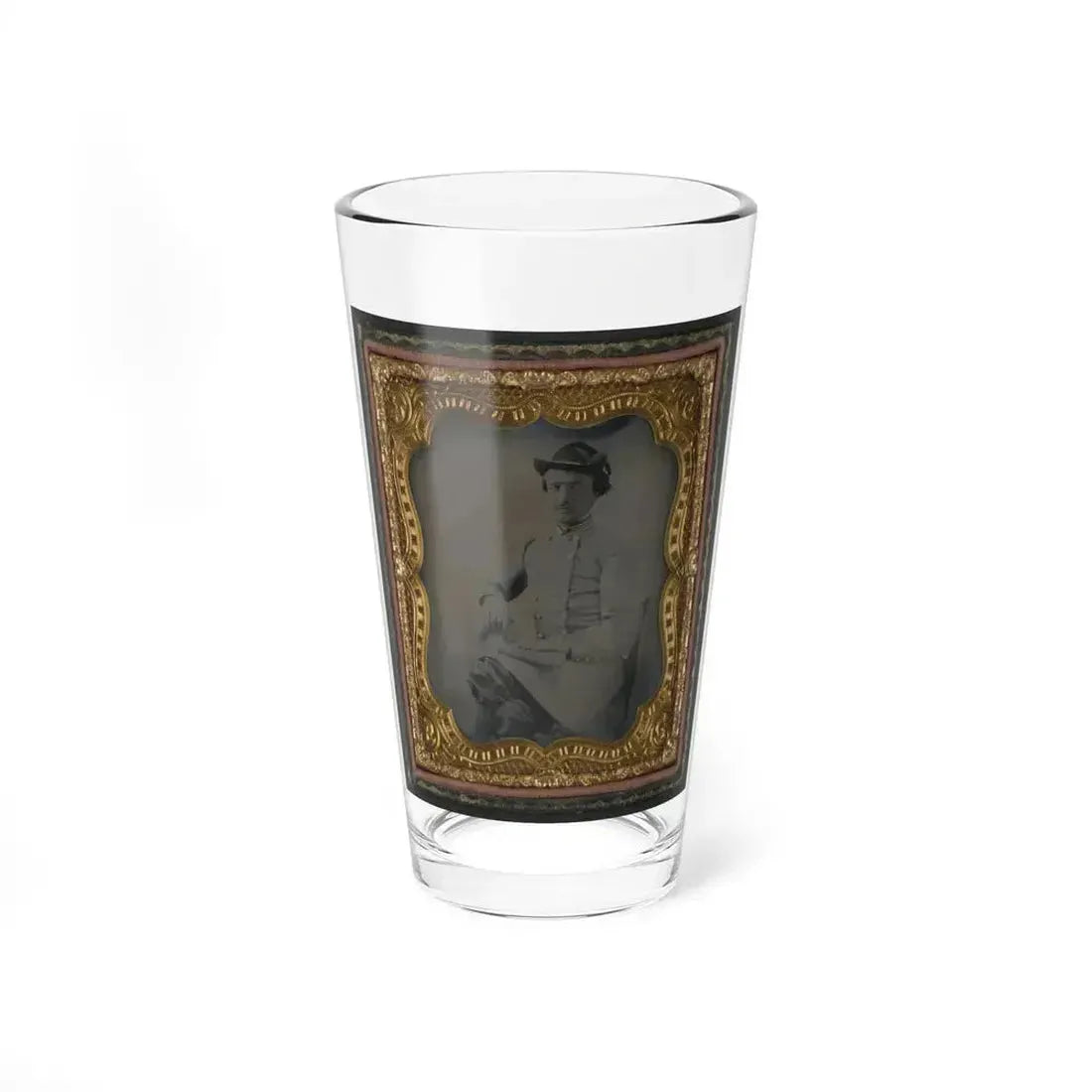 The glass itself is durable and dishwasher safe, making it a practical addition to any home bar or collection. Whether you're sipping on your favorite beverage or using it as a conversation starter, this pint glass offers a compelling glimpse into the past, bringing history to life in an unexpected way. This design would make a thoughtful gift for Civil War buffs, collectors, or anyone with an interest in American military history.