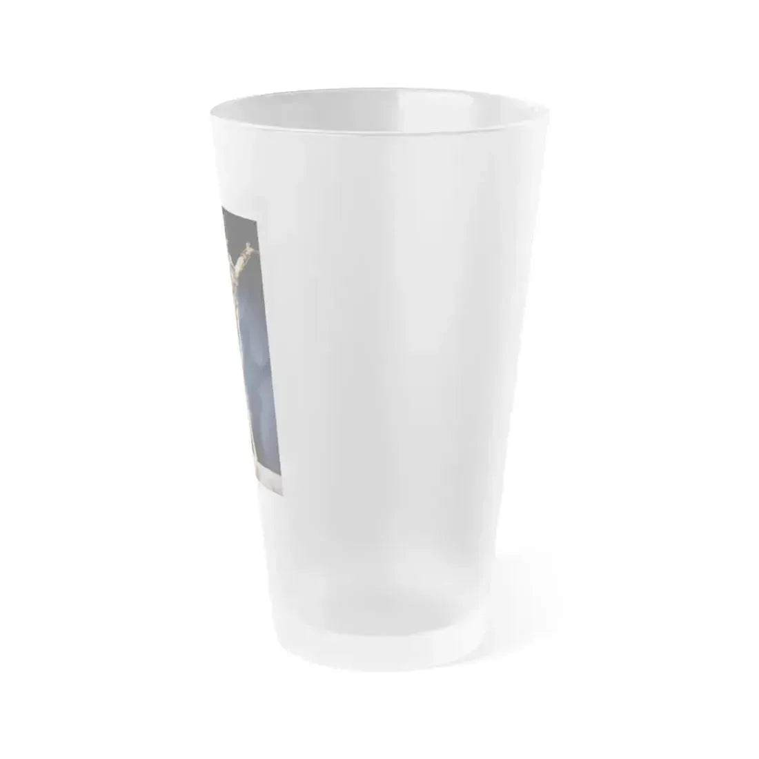 Frosted pint glass (16 oz / ≈0.47 L) with a soft matte finish and semi-translucent, one-sided print. Tough enough for bar and restaurant use, dishwasher safe, and BPA-free — a modern take on classic pintware.