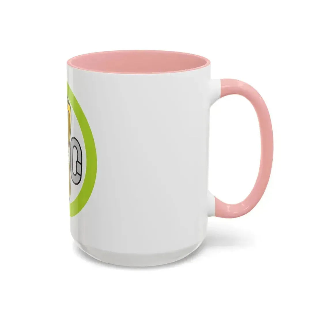 Accent ceramic mugs with a glossy white exterior and a colored interior & handle. Offered in 11 oz (≈330 ml) and 15 oz (≈440 ml), these mugs pair strong visual contrast with everyday durability — lead- and BPA-free.
