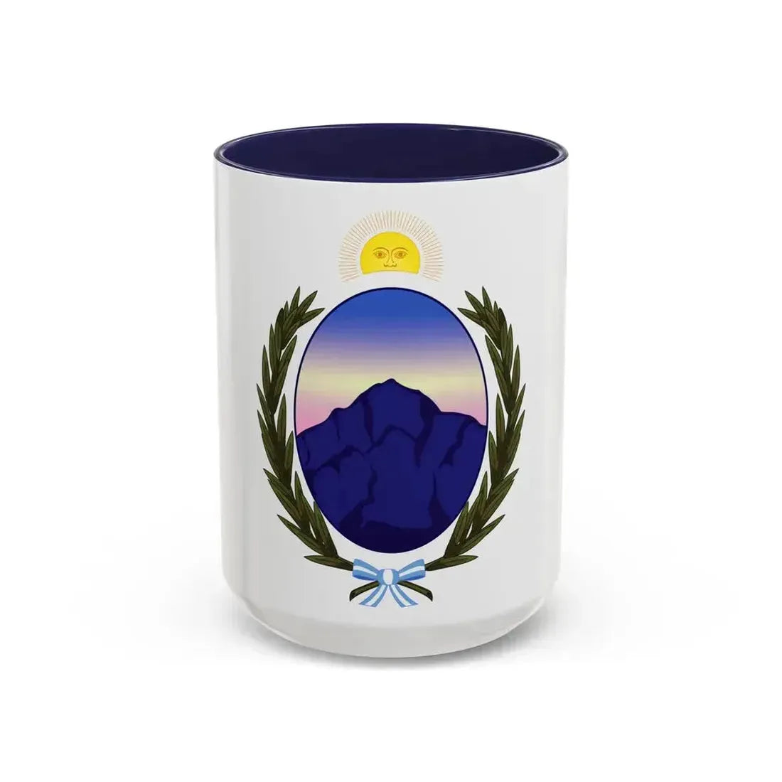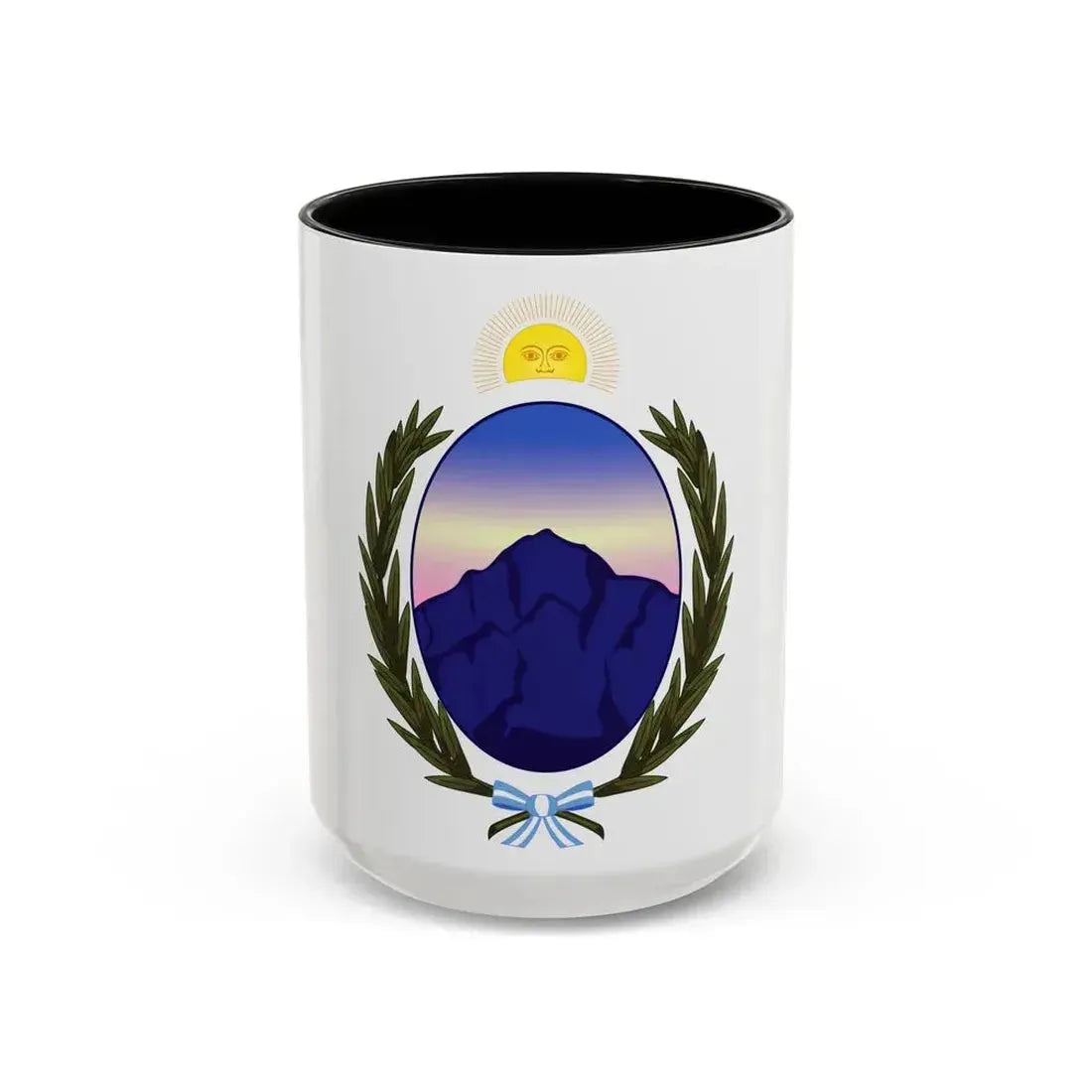 Step into a rich heritage with this Coat of Arms La Rioja Argentina Accent Coffee Mug. This mug is adorned with the emblematic coat of arms of La Rioja, a province located in northwestern Argentina, known for its wine production and historical significance. The design showcases the shield's central emblems - a grape vine stock and a bishop's mitre - representing the region's viticulture and Roman Catholic heritage. This mug is an excellent choice for history enthusiasts or anyone with a love for Argentine culture, particularly those fond of South American artistry.