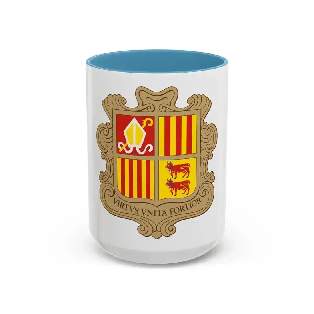 Crafted with attention to detail, this coffee mug is not only functional but also a conversational piece for those who share an interest in unique design elements. Whether you are an avid traveler, a history buff, or simply someone who appreciates eye-catching artwork, the "Coat of Arms of Andorra - Accent Coffee Mug" is sure to pique your curiosity and enhance your morning beverage ritual. Perfect for anyone who appreciates unique and cool drinkware.