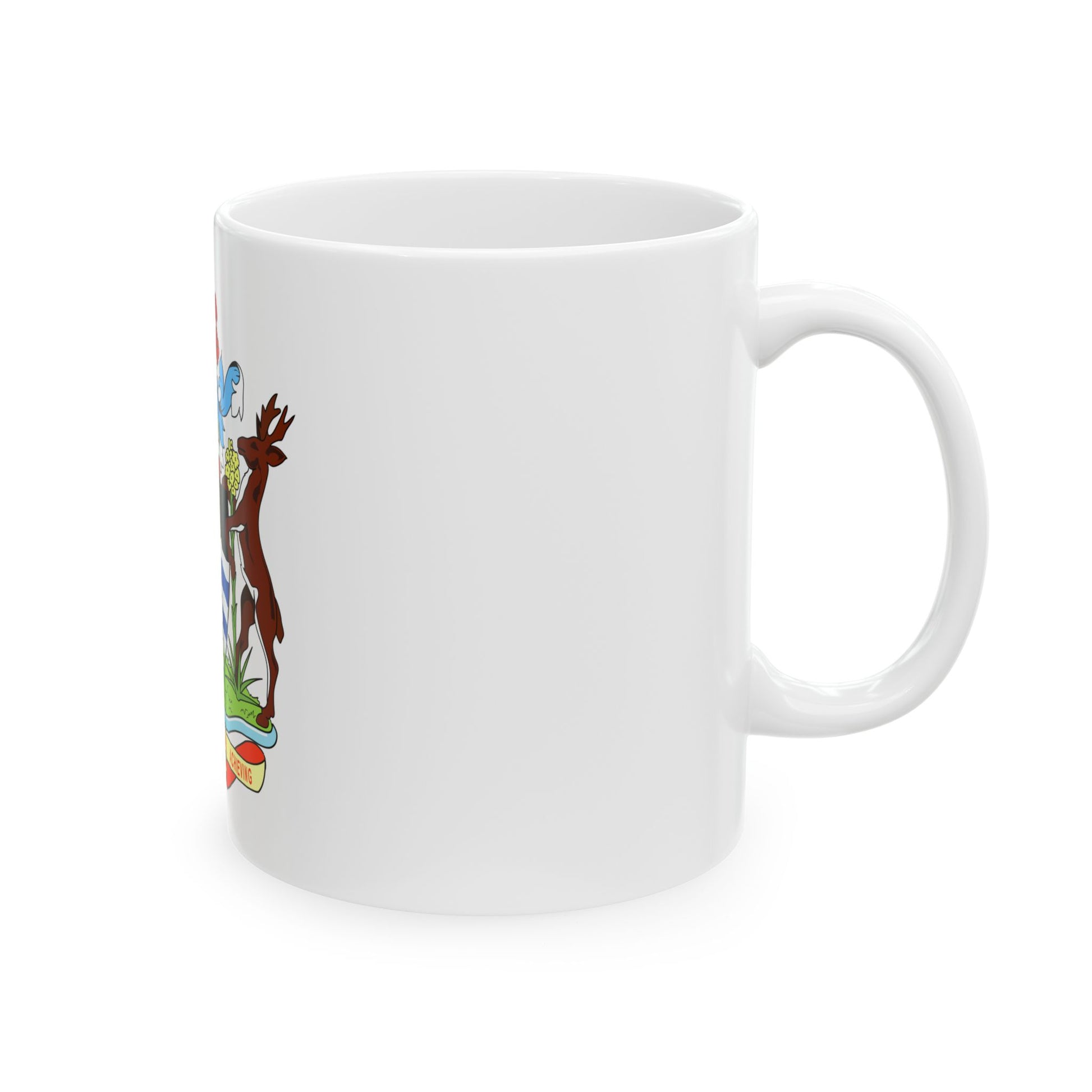 The Coat of Arms of Antigua and Barbuda adorns this white coffee mug, making it an excellent choice for history enthusiasts and those with a fondness for Caribbean culture. The design features three shields, symbolizing the three islands that make up Antigua and Barbuda: Antigua, Barbuda, and Redonda. The central shield showcases a black bird of Saint Vincent, representing independence and freedom, while the other two shields depict a pineapple for commerce and a betroot stalk for agriculture, reflecting the country's economic foundation. Beneath the shields lies a scroll inscribed with the national motto: "Friendship, Trade, and Religion." Sip your favorite beverage from this unique piece of Antiguan and Barbudan heritage.