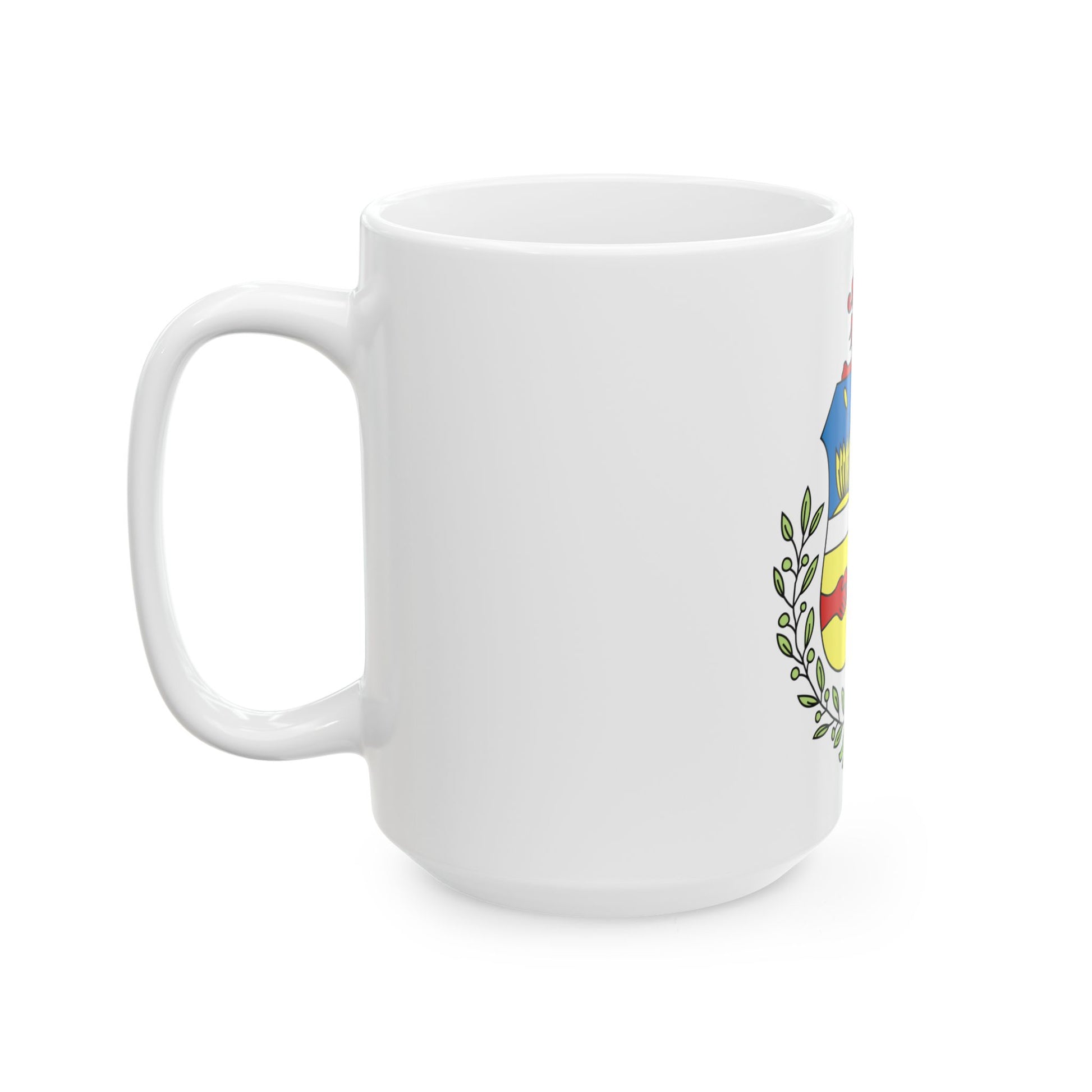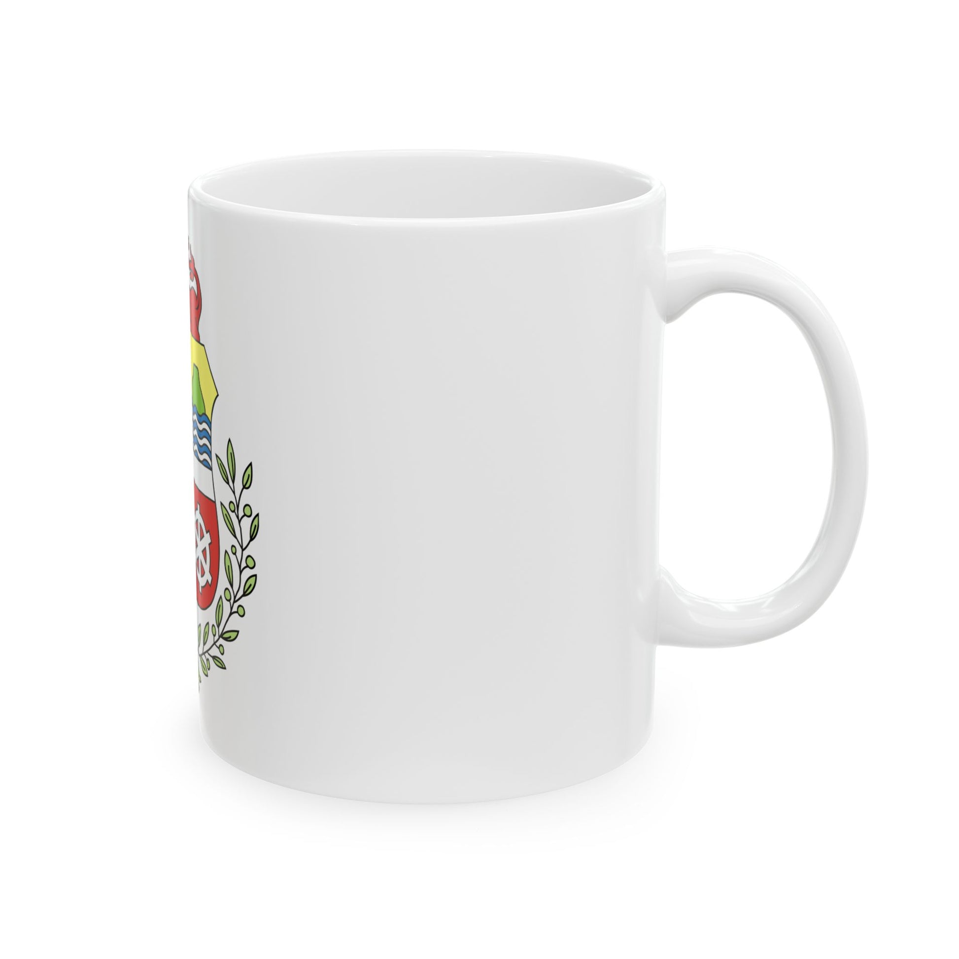 This White Coffee Mug showcases a captivating design inspired by the Coat of Arms of Aruba. The emblematic design includes a shield adorned with elements symbolizing the nation's rich history and heritage. At the center, you will find an outline of the island itself, representing the heartland of this vibrant Caribbean country. Surrounding the central image are various symbols such as a donkey, a beehive, and an open book - all significant to Aruba's culture and traditions. This mug is perfect for anyone who appreciates unique and cool drinkware, especially those with a fondness for world travel or Caribbean history.