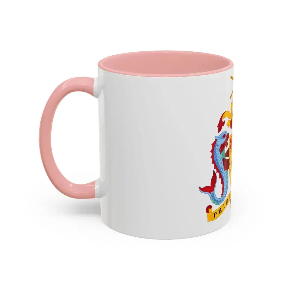 Accent ceramic mugs with a glossy white exterior and a colored interior & handle. Offered in 11 oz (≈330 ml) and 15 oz (≈440 ml), these mugs pair strong visual contrast with everyday durability — lead- and BPA-free.