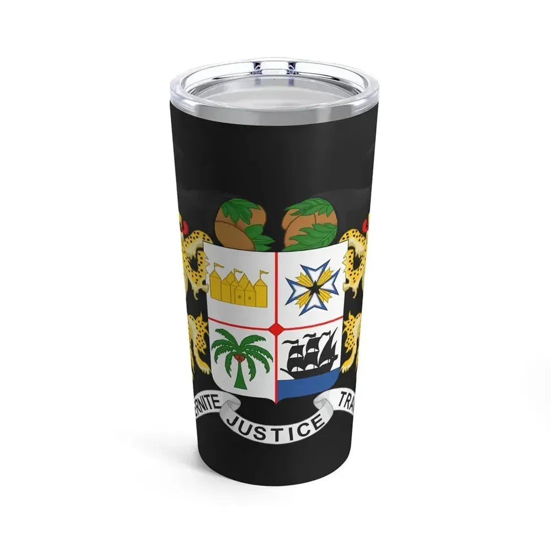 The Coat of Arms of Benin, as a cultural symbol, is beautifully embodied in this 20oz tumbler. The design features the national emblem, which showcases a shield supported by two lions flanking either side. The shield is divided into four quarters, representing the traditional kingdoms of Benin. In the center, the traditional throne of the Oba (the monarch) is depicted, symbolizing the royal power and authority. This tumbler is an excellent choice for anyone who appreciates unique and cool drinkware, as well as those with a keen interest in African culture or history.