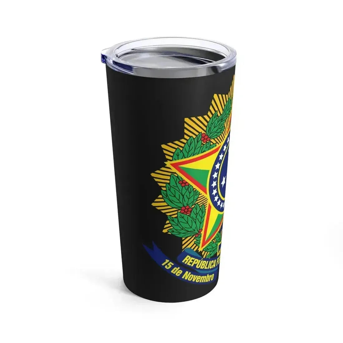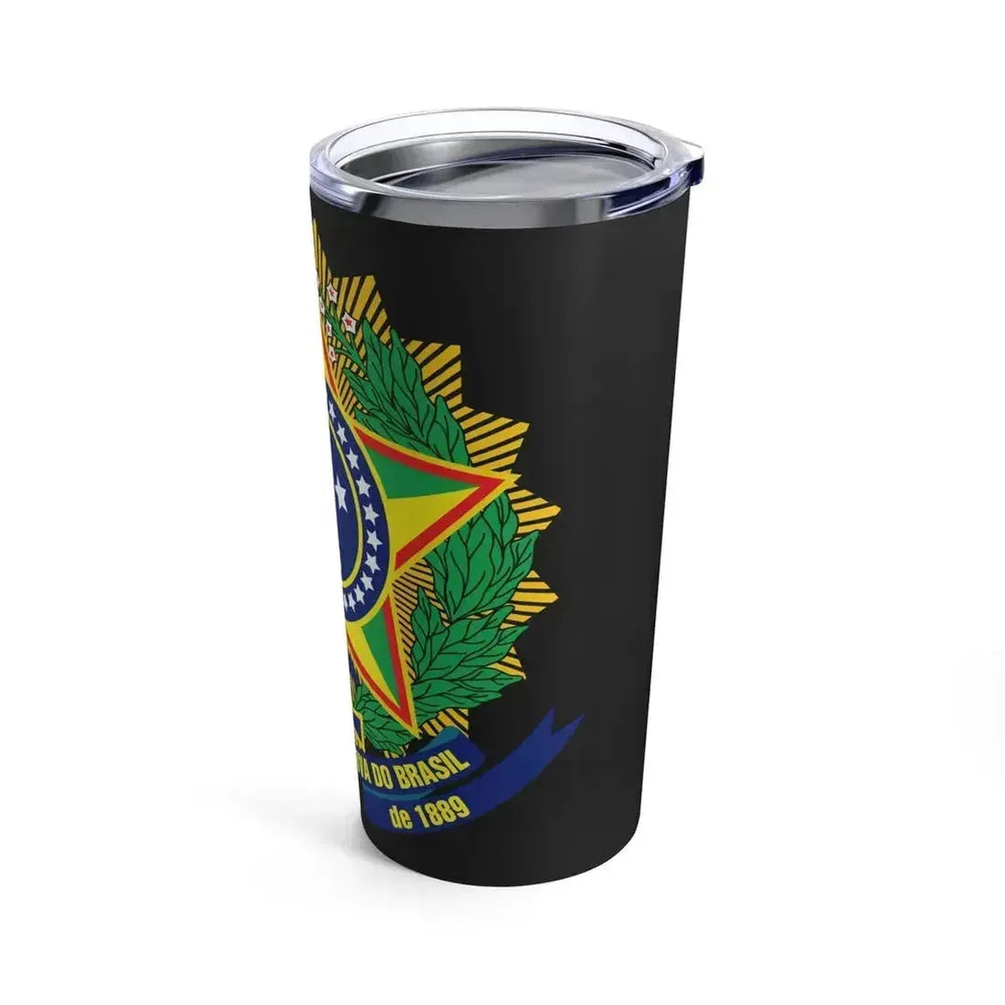 The Coat of Arms of Brazil 20oz Tumbler showcases a striking representation of the national emblem, symbolizing the rich heritage and pride of the Brazilian people. This drinkware features an intricate design inspired by the official coat of arms, which dates back to the formation of the Empire of Brazil in 1822. The design consists of a shield divided into five quadrants, each filled with iconic Brazilian imagery such as the green tropical tree and the fleur-de-lis symbolizing the kingdoms of Portugal, Aragon, Castile, and Leon. Atop the shield rests the Brazilian eagle, a powerful bird that embodies strength and freedom. This tumbler is perfect for anyone who appreciates unique and cool drinkware and takes pride in showcasing their love for Brazil.