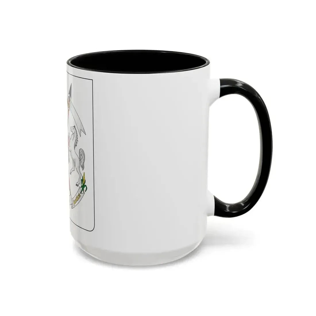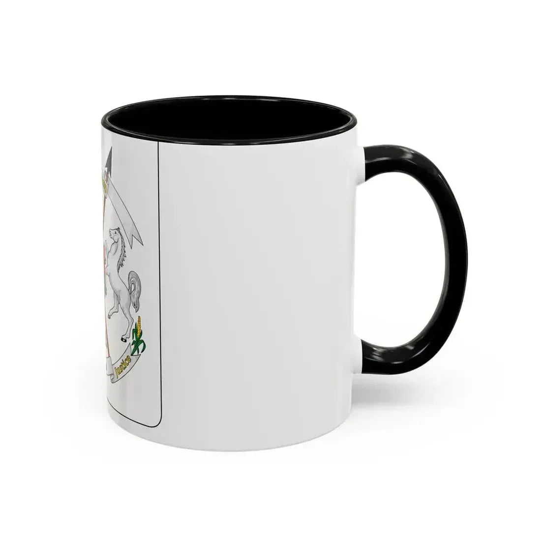 Accent ceramic mugs with a glossy white exterior and a colored interior & handle. Offered in 11 oz (≈330 ml) and 15 oz (≈440 ml), these mugs pair strong visual contrast with everyday durability — lead- and BPA-free.