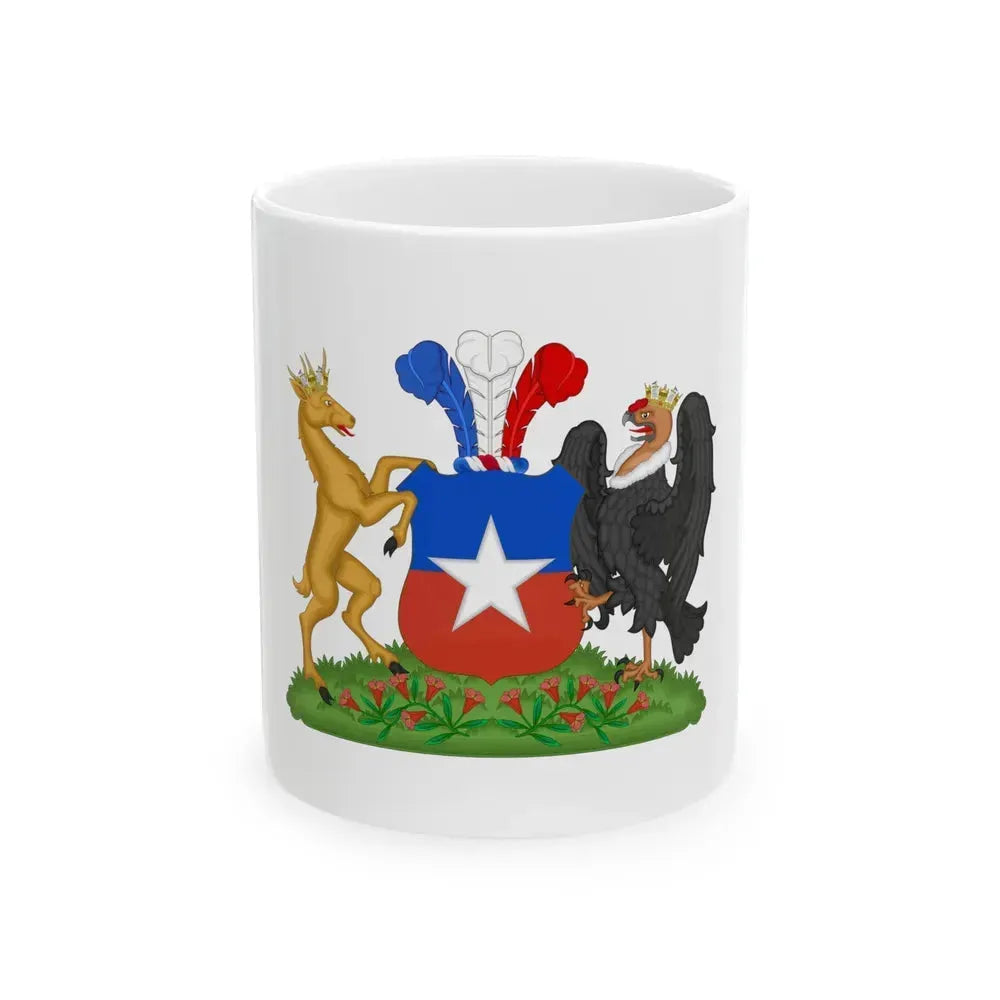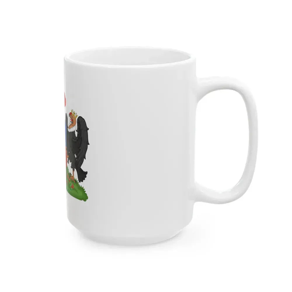 Step back in time with this unique coffee mug featuring the Coat of Arms of Chile from 1834-1920, specifically the compartment variant design. This historic artwork showcases the national symbols of Chile, including a condor, a coquette, and the Andes mountain range, all enclosed within a shield. The mug's white background allows the intricate details of the Coat of Arms to stand out, making it a fascinating piece for history enthusiasts or anyone who appreciates unique and cool drinkware.