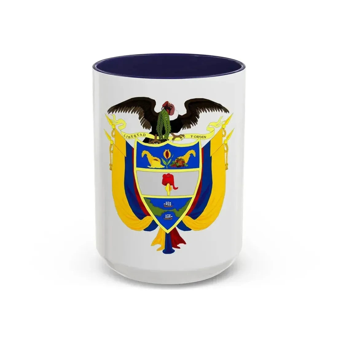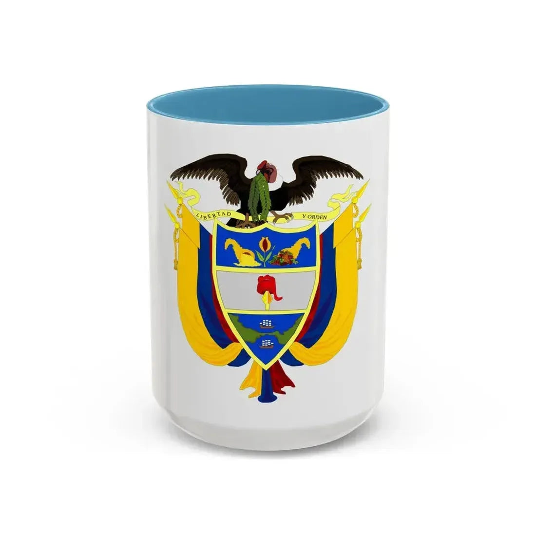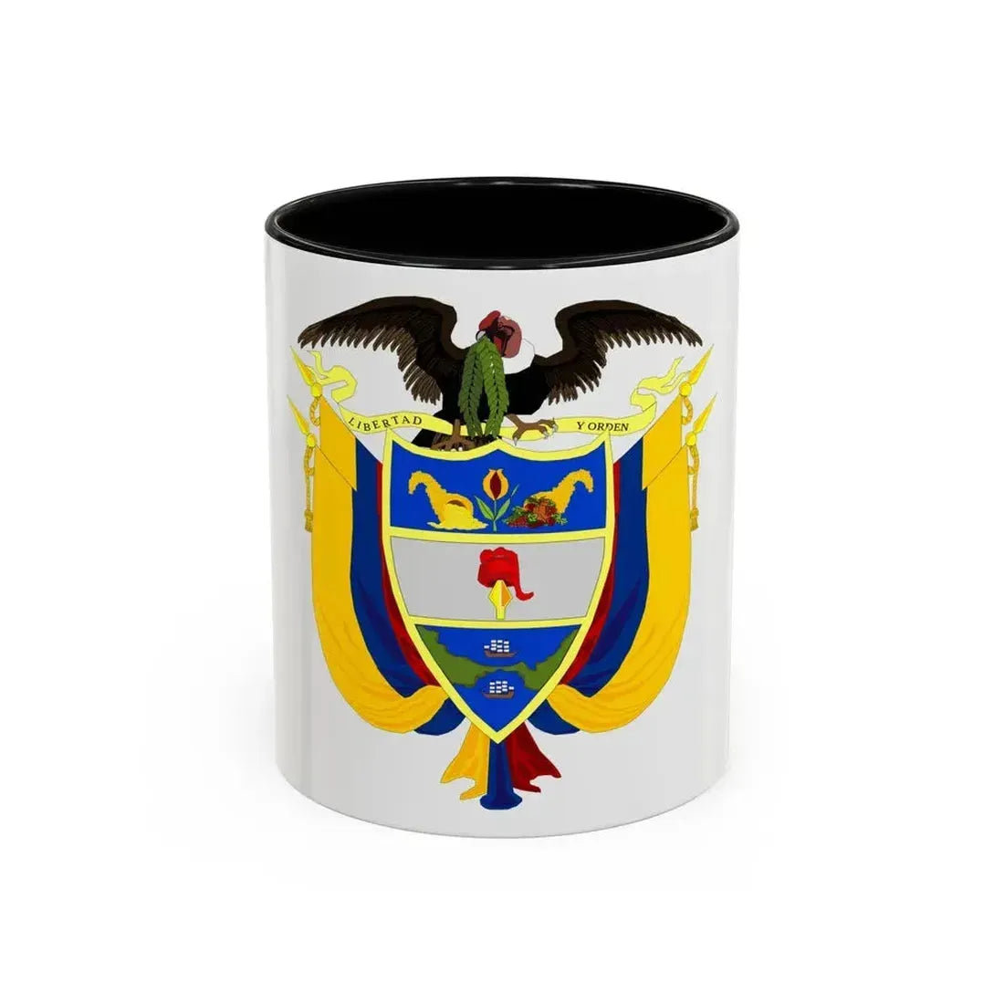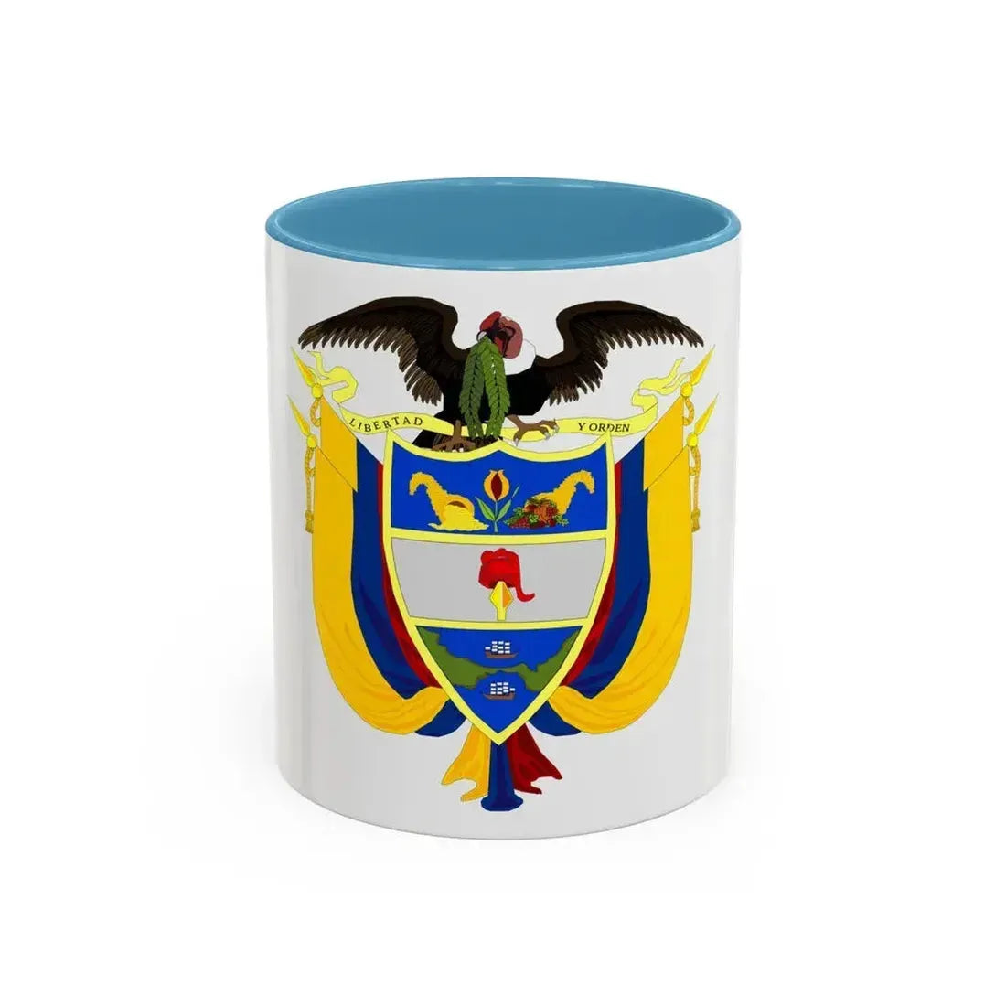 Delve into a piece of Colombian heritage with this Coat of Arms of Colombia 3 Accent Coffee Mug. The design showcases the iconic coat of arms, a symbol deeply rooted in the country's rich history and culture. Originally adopted in 1906, the coat of arms represents unity among the departments of the Colombian Republic. The escutcheon features a bald eagle carrying a banner with the motto "Dum spiro spero" (While I breathe, I hope), embodying the spirit of resilience and optimism that defines Colombia. This coffee mug is perfect for anyone who appreciates unique and cool drinkware, as well as those with an affinity for Colombian history or design.