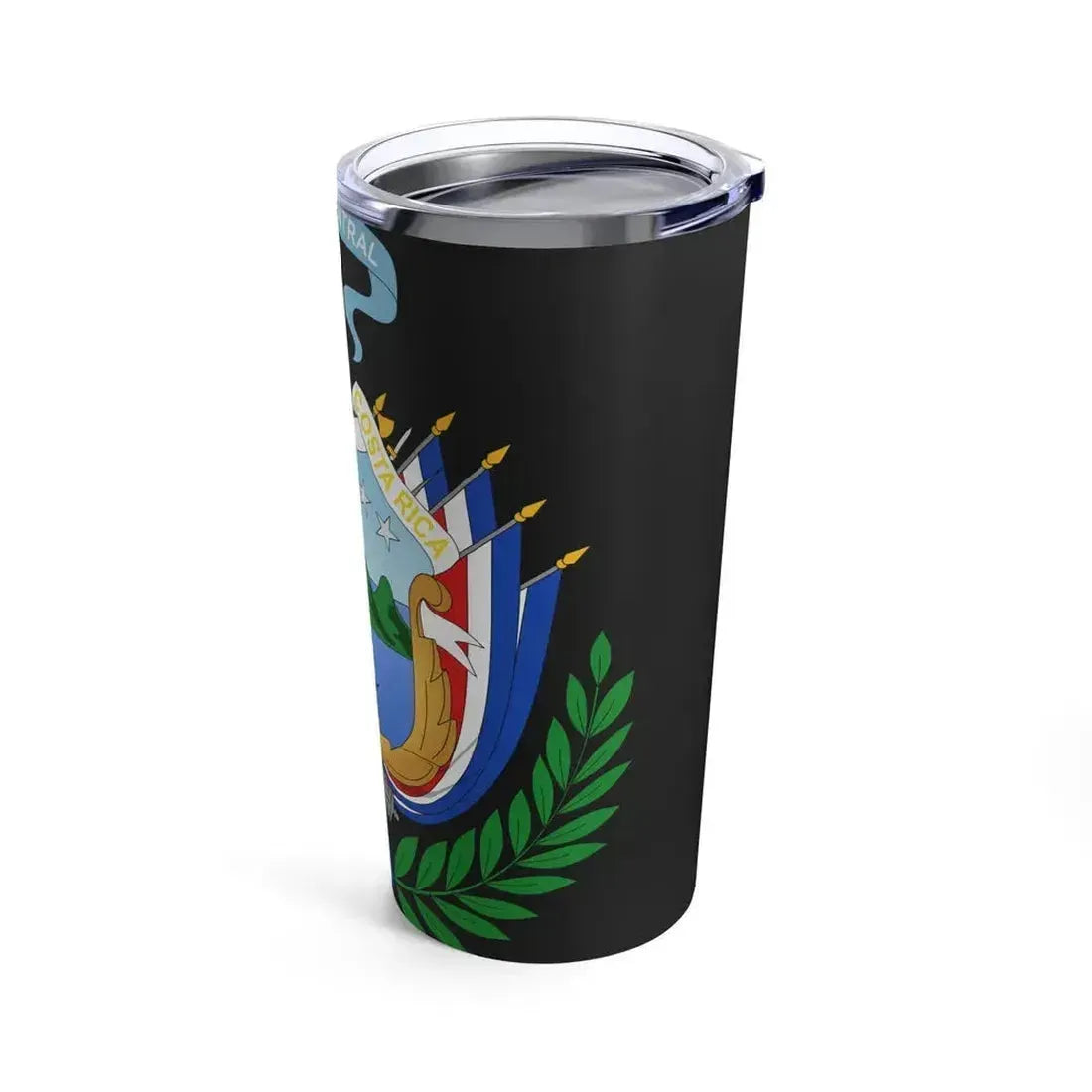 This 20oz tumbler showcases the Coat of Arms of Costa Rica from the period between 1848 and 1906. The design beautifully captures the national emblem, symbolizing the country's rich history and heritage. The shield is adorned with a central white heraldic dove, a symbol of peace and unity, standing upon a branch crossed by a laurel and a palm, emblems of victory and prosperity respectively. Surrounding the shield are five volcanic mountains, representing the seven provinces of Costa Rica during that time period. The design is an excellent choice for history enthusiasts, travelers with connections to Costa Rica, or anyone who appreciates unique and cool drinkware.