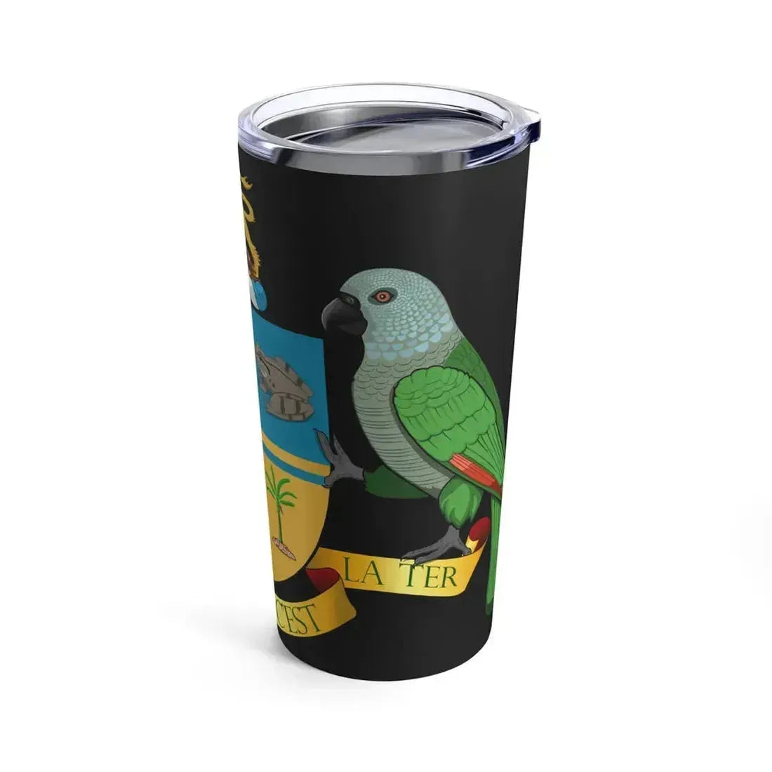 Perfect for anyone who appreciates unique and cool drinkware, especially those with connections to or an interest in the beautiful Caribbean island of Dominica. This 20oz tumbler features the Coat of Arms, showcasing the nation's rich heritage through its intricate design and symbolic elements.