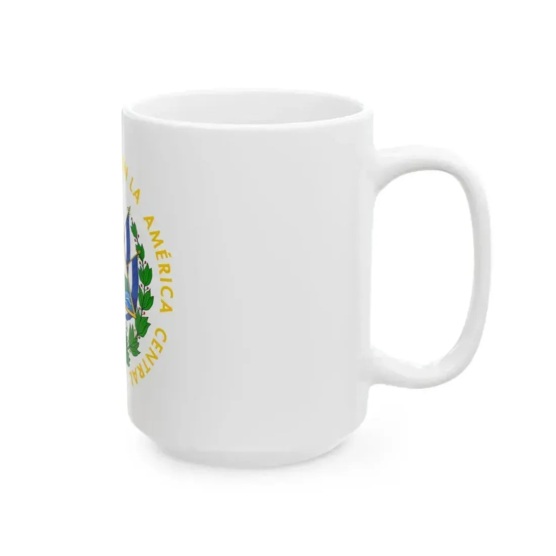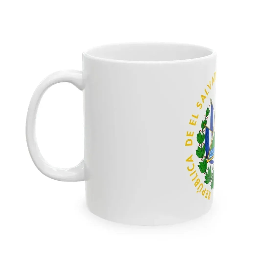 This White Coffee Mug showcases the Coat of Arms of El Salvador, making it an ideal choice for anyone interested in Central American history or culture. The design on this mug features a shield adorned with a volcano, representing the three active volcanoes found within El Salvador's borders. The shield is surrounded by a garland of coffee leaves, signifying the country's significant coffee production. A bold, colorful banner displays the national motto "Dios, Unión, Libertad" (God, Union, Liberty). This mug serves as a striking conversation starter for those who appreciate unique and cool drinkware, as well as those with an affinity for El Salvador's rich heritage.