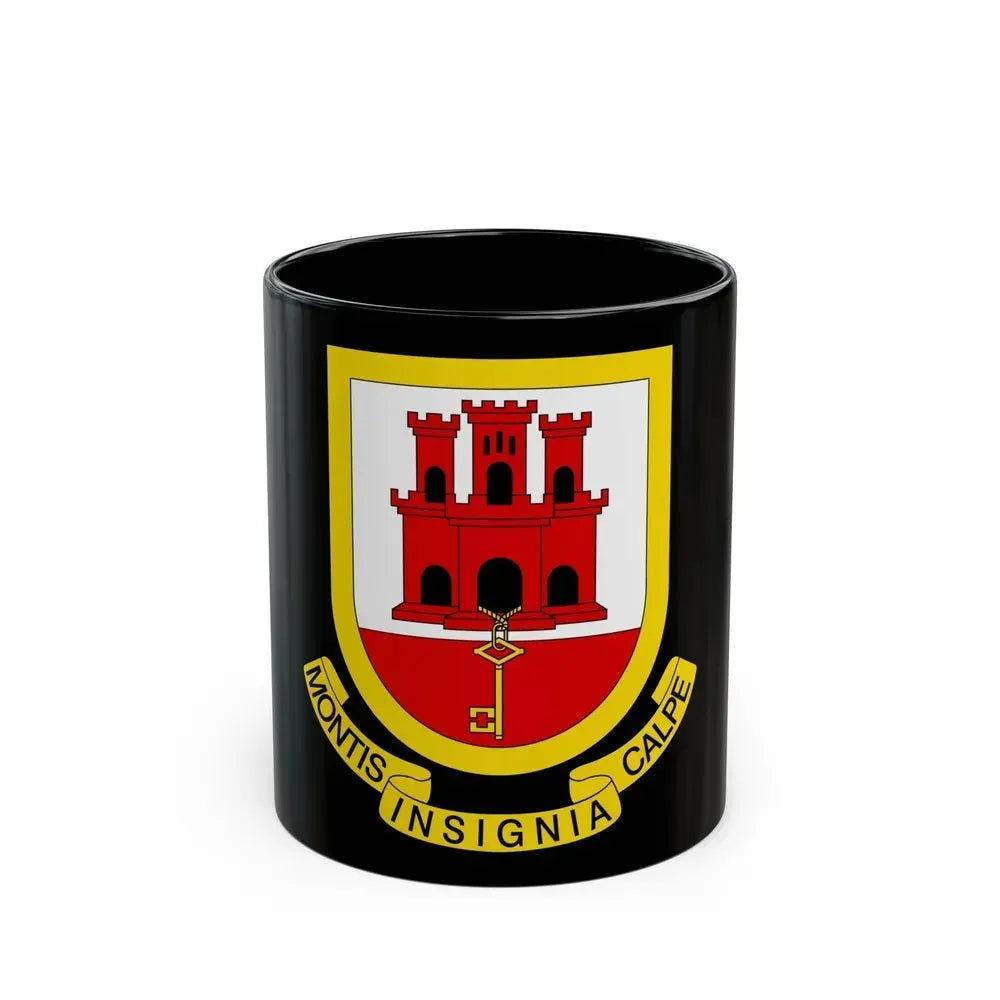 This black coffee mug features the Coat of Arms of Gibraltar, making it an excellent choice for individuals with a keen interest in history or geography. The design includes symbols significant to Gibraltar's heritage, such as the tower representing its fortification and the lion from the British Royal Arms, symbolizing the British governance. The motto "Montis Fidei Dilectissima Colonia" (Dear Colony of the Rock of Faith) is also included, adding a historical touch to your daily brew. This mug serves as an intriguing conversation starter and a subtle nod to Gibraltar's rich cultural heritage, making it perfect for anyone who appreciates unique and cool drinkware.