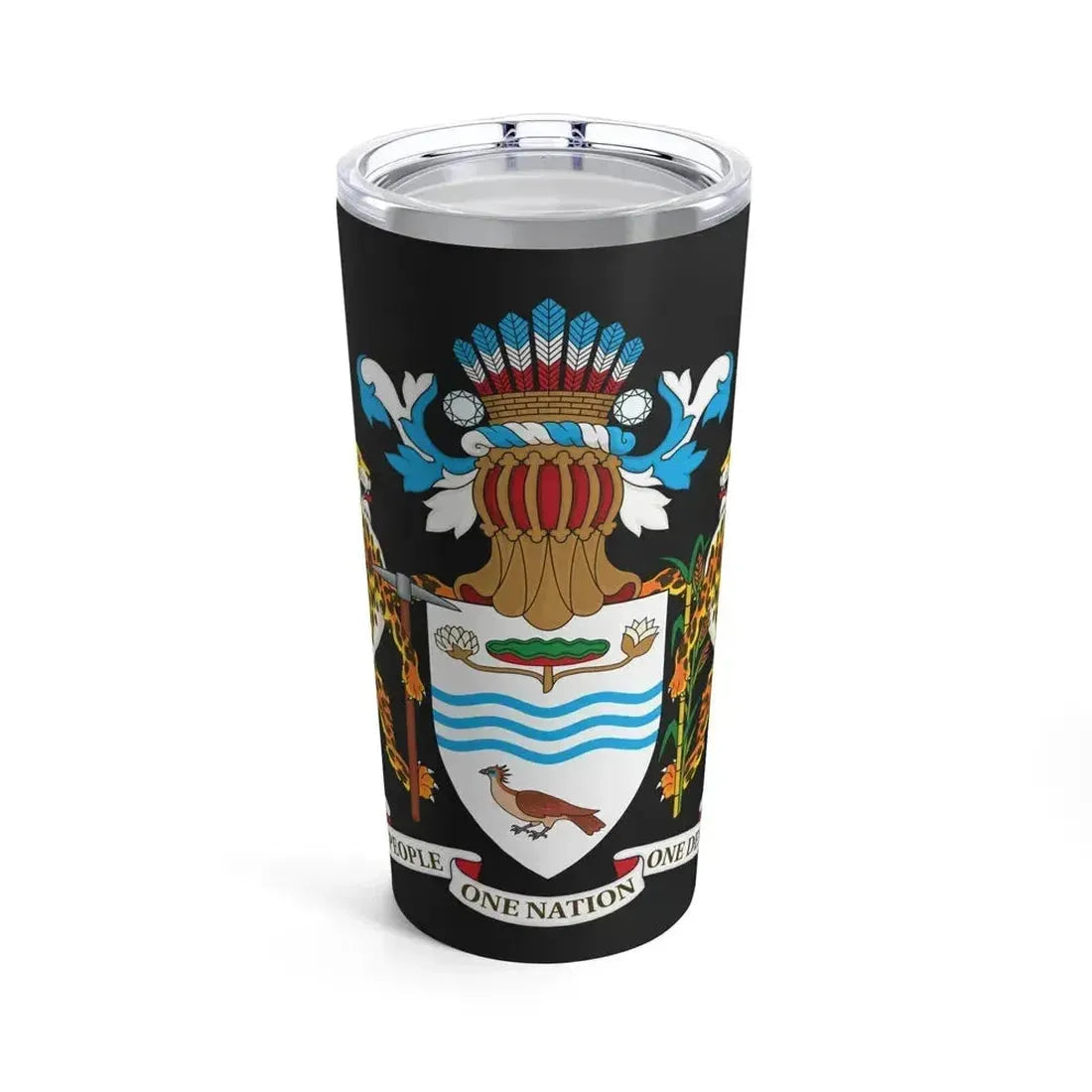 Whether you're sipping your morning coffee or enjoying an evening beverage, this 20oz tumbler is both functional and decorative. Its design highlights the intricate details of Guyana's Coat of Arms, making it a striking addition to any table setting. Whether you're a proud Guyanese expatriate, a traveler who has visited Guyana, or simply someone fascinated by the country's rich history and culture, this tumbler is an ideal choice. Perfect for anyone who appreciates unique and cool drinkware.