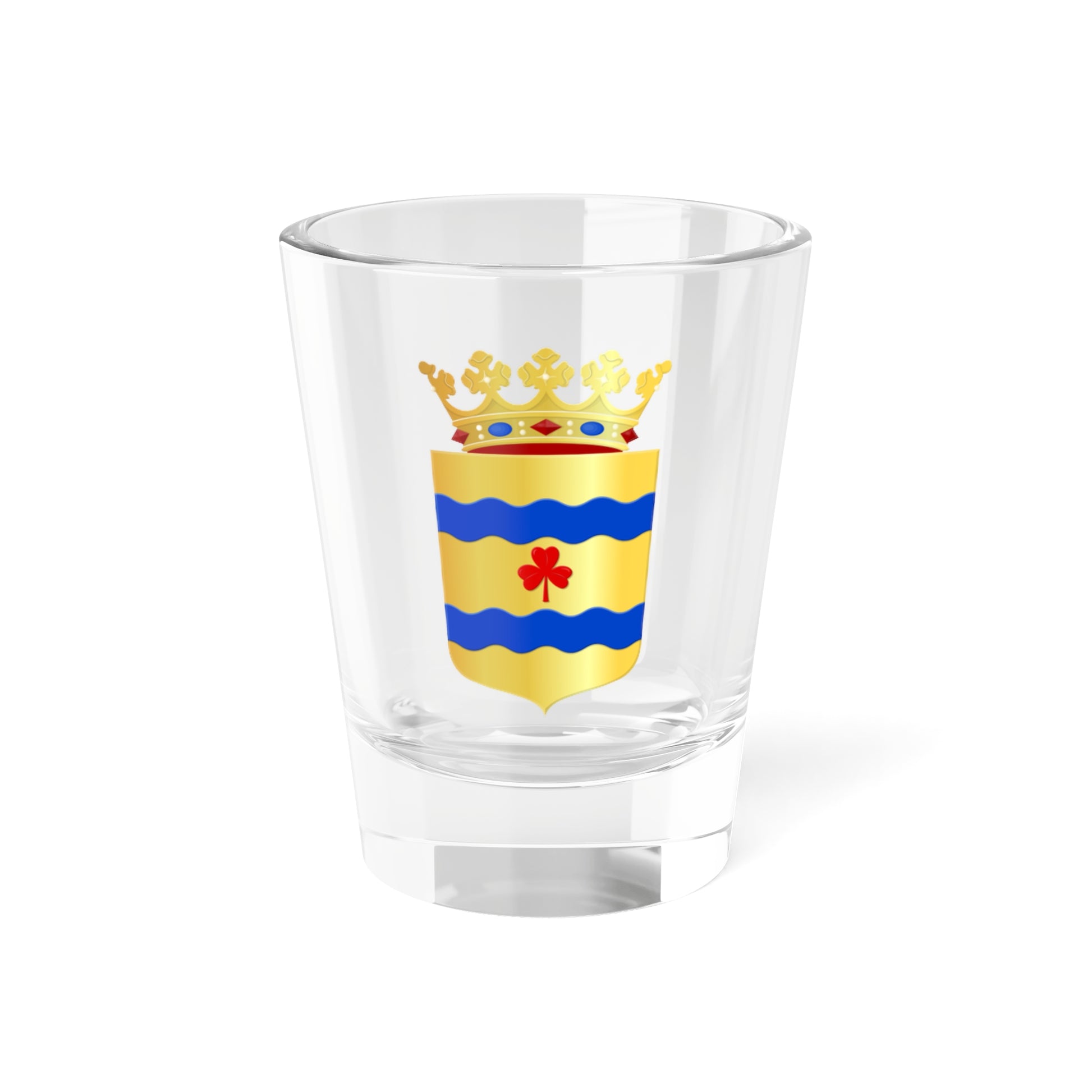 This shot glass showcases the distinguished Coat of Arms of Hardenberg, a municipality nestled in the province of Overijssel, Netherlands. The design is a visual testament to the region's rich history and geography.