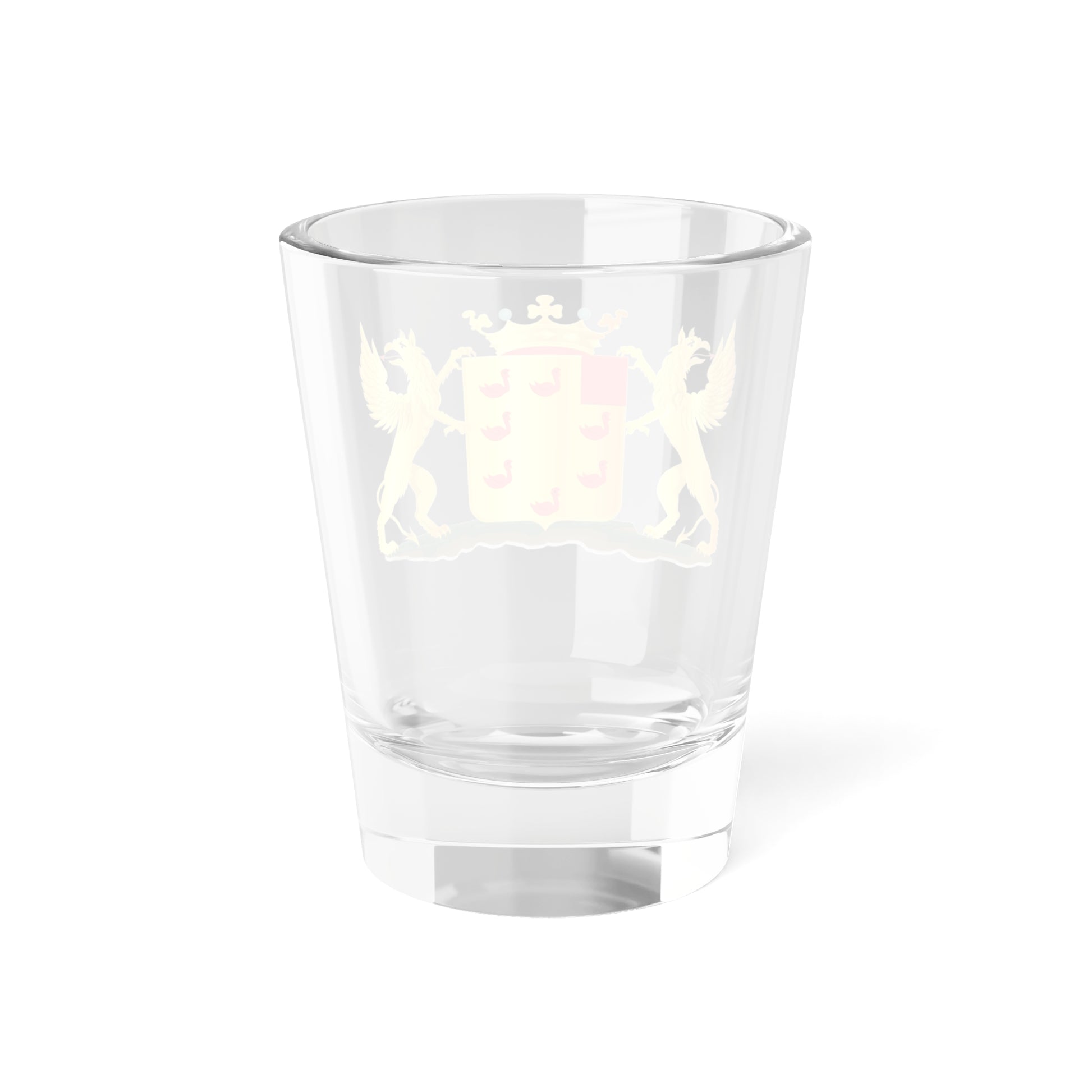This shot glass showcases the historic Coat of Arms of Heemstede, a municipality in North Holland, Netherlands, a design officially granted in 1816 and remaining unchanged to this day. The design is a vibrant representation of heraldic tradition.