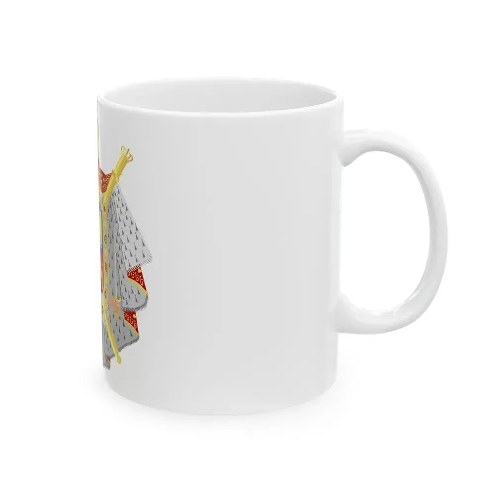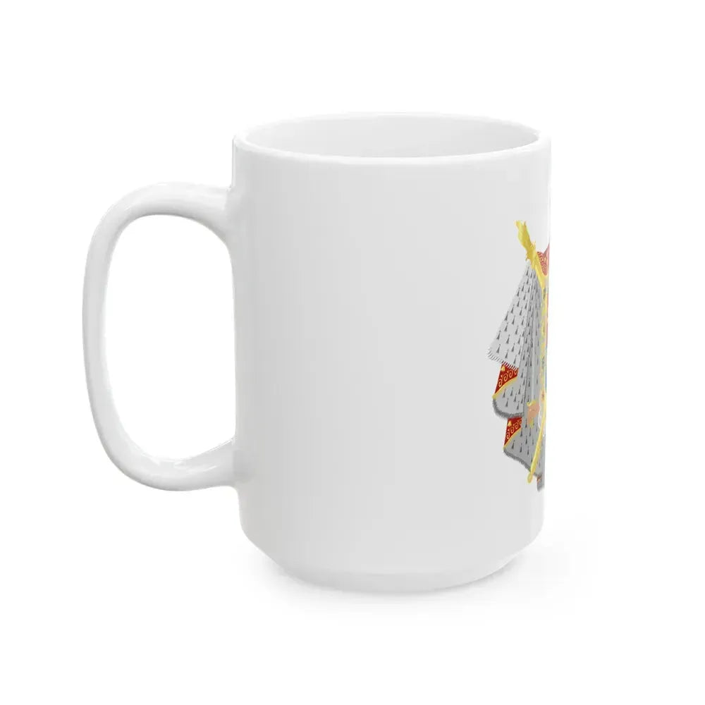 The artwork on this white coffee mug is meticulously detailed, capturing the essence of the original coat of arms. The design serves as a conversation starter, making it ideal for gatherings, family dinners, or simply enjoying your morning coffee. Its classic and timeless appeal ensures that this mug will remain a cherished addition to any collection.