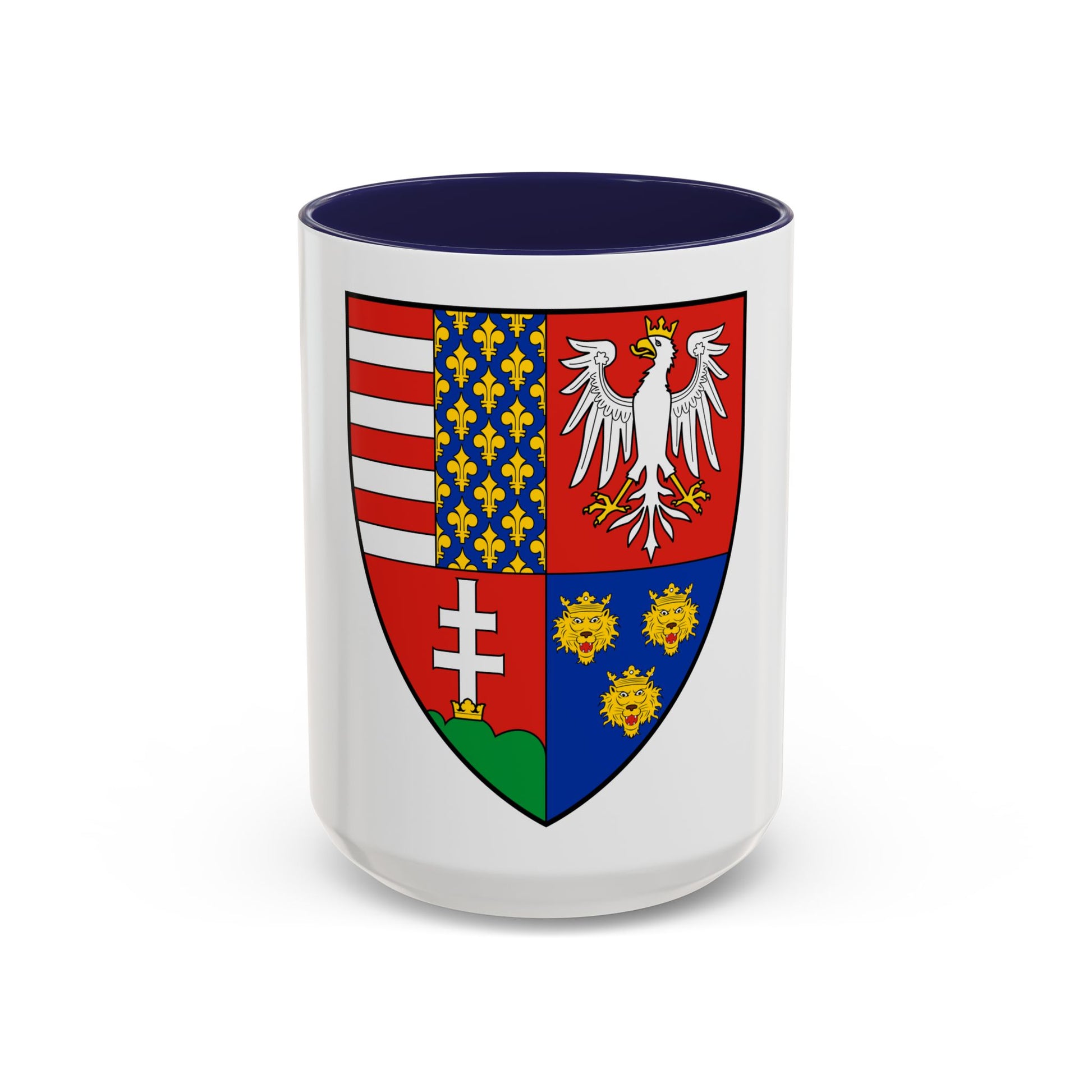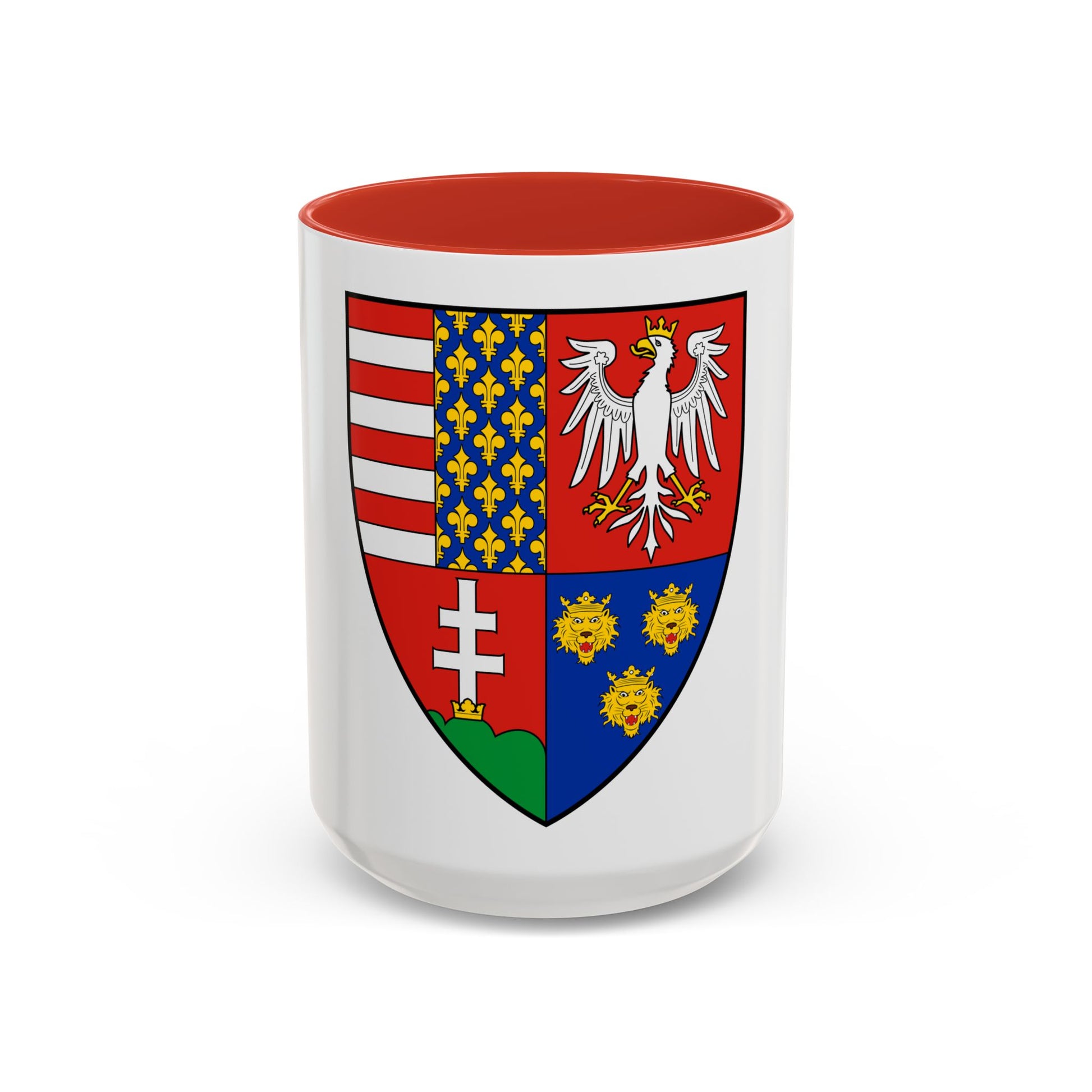 Step back in time with this unique accent coffee mug featuring the Coat of Arms of Louis I of Hungary (1370). Known as the founder of the Habsburg-Anjou dynasty, Louis was a significant figure in medieval Europe, reigning over Hungary and Croatia. This historic artwork adorns this mug, offering a captivating blend of history and contemporary style.