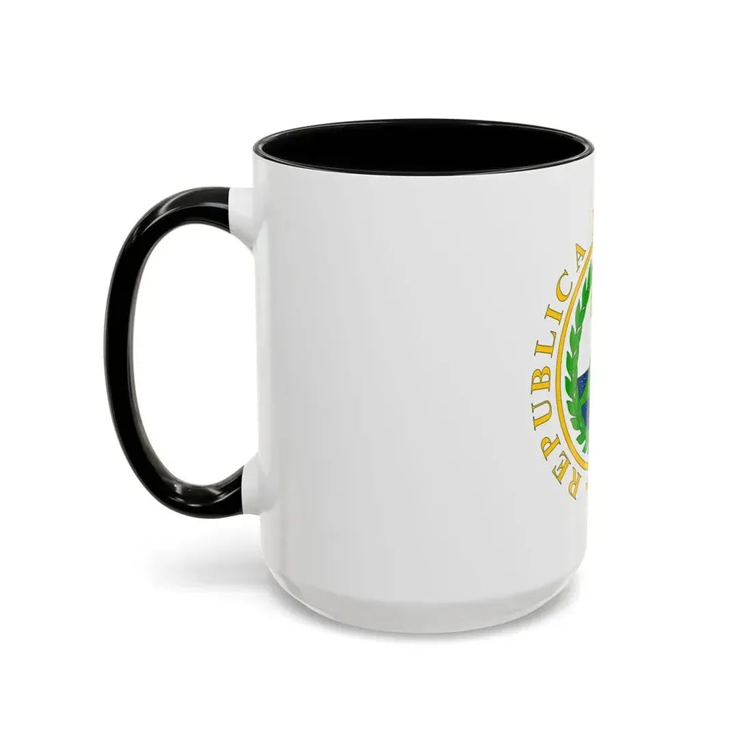 This unique Accent Coffee Mug showcases the Coat of Arms of Nicaragua, as designed in 1854. The emblem features a shield divided into four quarters, each bearing a distinct symbol representing the nation's heritage and values. On the left side, you'll find a volcano symbolizing the country's active volcanic landscape. On the right, an olive branch signifies peace. The bottom quarter displays a star and cogwheel, symbols of agriculture and industry, while the top quarter showcases a lion - the national animal embodying strength and courage.