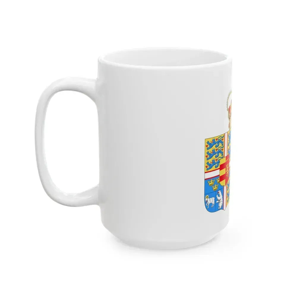 This elegant White Coffee Mug showcases a captivating design inspired by the Coat of Arms of Princess Marie of Denmark. The intricate heraldry symbolizes the rich history and tradition of the Danish Royal Family. Embellished with symbolic elements such as lions, roses, and griffins, this mug offers a tasteful nod to royal lineage and heritage. It's perfect for anyone who appreciates unique and cool drinkware while cherishing a connection to royal history.