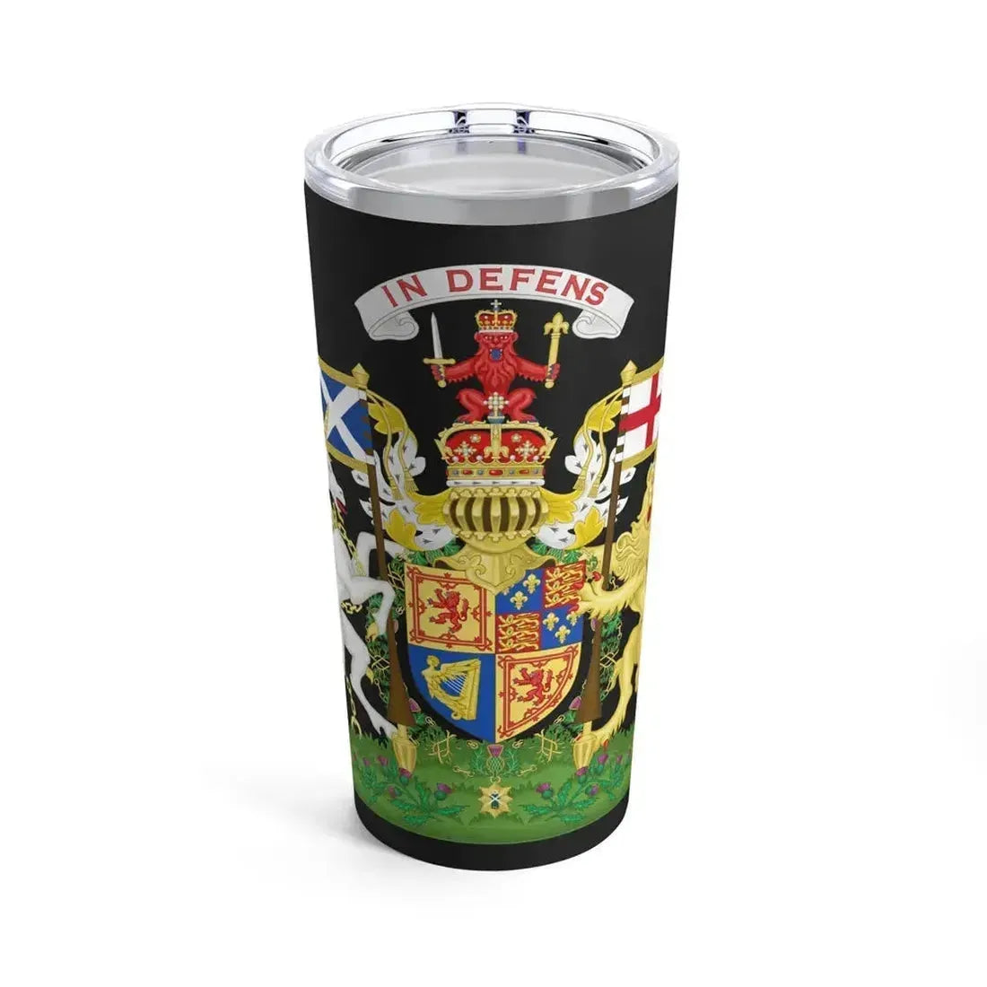 Step back in time with this stunning 20oz tumbler featuring the Coat of Arms of Scotland from 1603-1649. This remarkable design showcases a rich tapestry of Scottish history, symbolism, and national pride. The emblematic lion rampant stands as a testament to courage and strength, while the unicorn, another iconic Scottish creature, embodies purity and grace. The interwoven thistle and rose represent the combination of strength and gentleness that define the Scottish spirit. For anyone who cherishes Scotland's heritage or admires historical artistry, this tumbler is a truly unique and captivating addition to their collection.