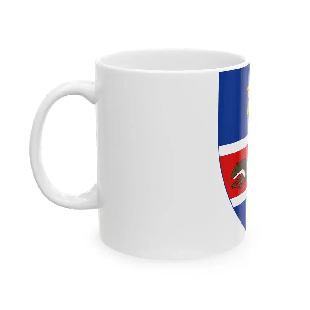This White Coffee Mug showcases the Coat of Arms of Slavonia, a historical emblem representing Croatia's Slavonia region. The design features intricate patterns, emblems, and symbols significant to the region's history and culture. The coat of arms often includes images such as the crown, shield, and lions, all symbolizing power, protection, and courage. This mug is perfect for anyone who appreciates unique and cool drinkware with a touch of historical significance, especially those with an interest in Croatian heritage or Slavonia's rich history.