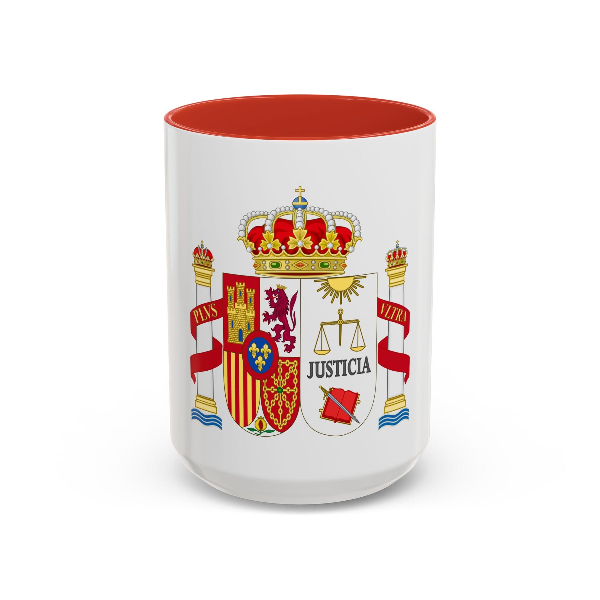 The artwork on this mug showcases the judiciary's official emblem, replete with heraldic symbols such as shields, lions, and scales—common motifs in legal imagery. By incorporating this design into your drinkware collection, you can display a touch of sophistication and professionalism in your home or office space. Whether sipping coffee on a morning commute or unwinding after a long day, the Accent Coffee Mug with Coat of Arms of Spanish Judiciary Badges serves as an inspiring reminder of justice's enduring importance.