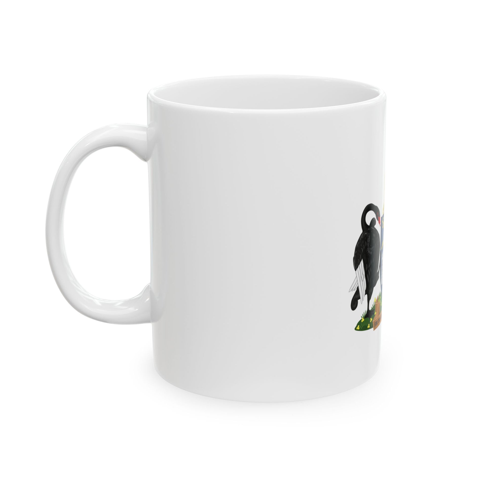 These mugs are built from durable white ceramic so colors pop cleanly and prints read with strong contrast. A smooth, glossy glaze gives each mug a lively sheen and makes it easy to wipe clean after daily use.