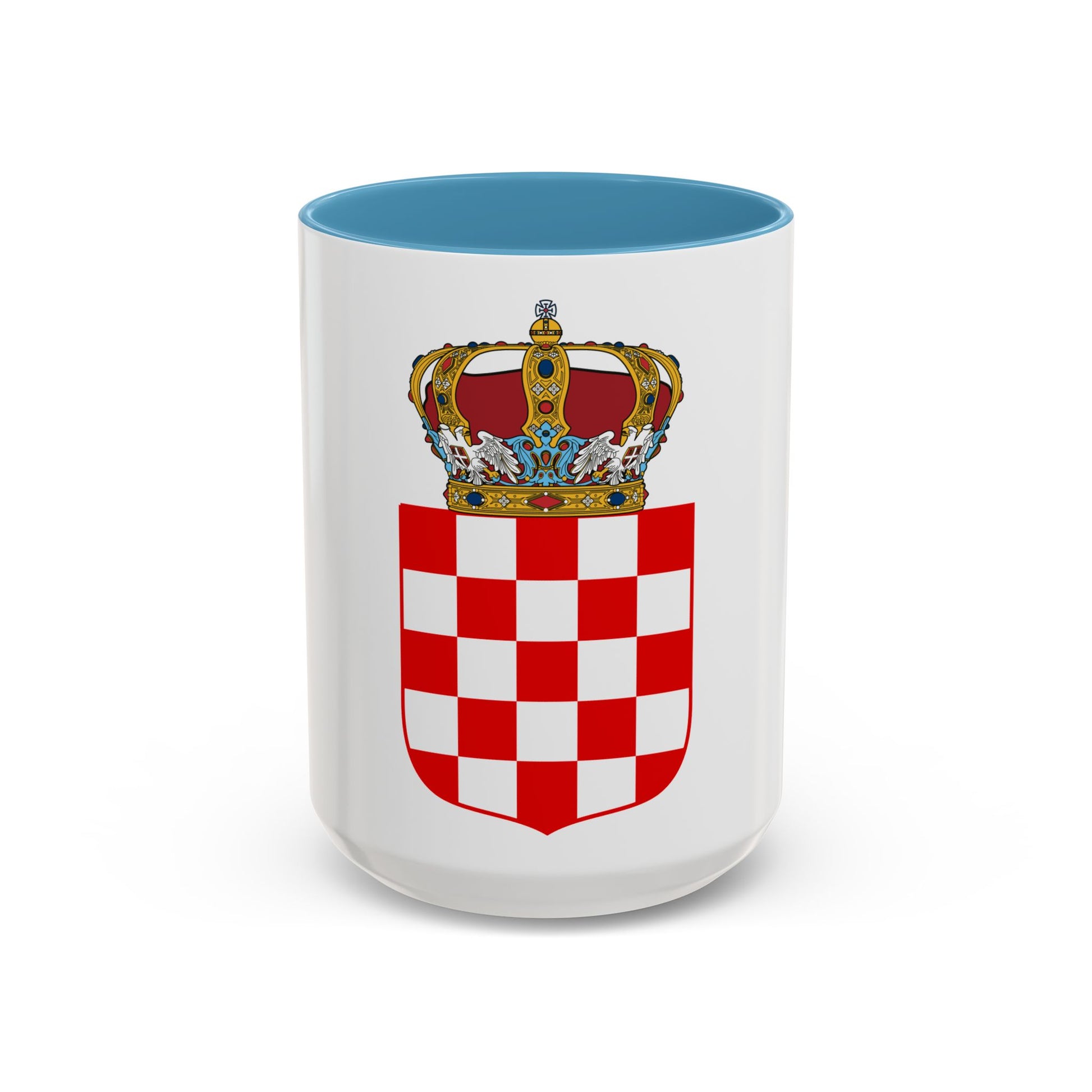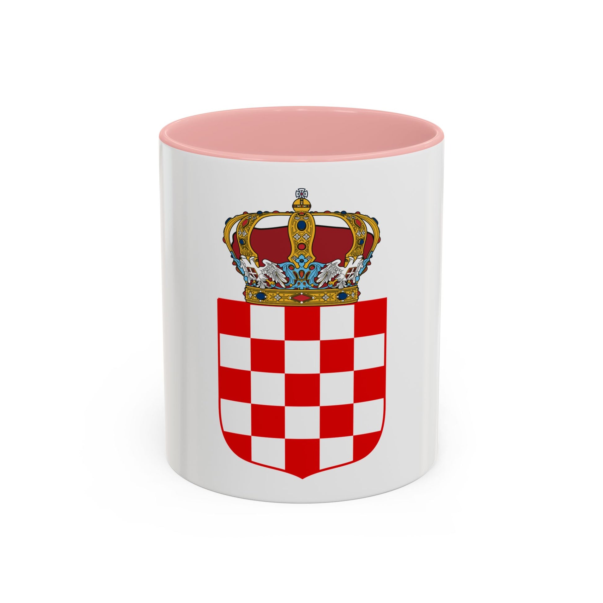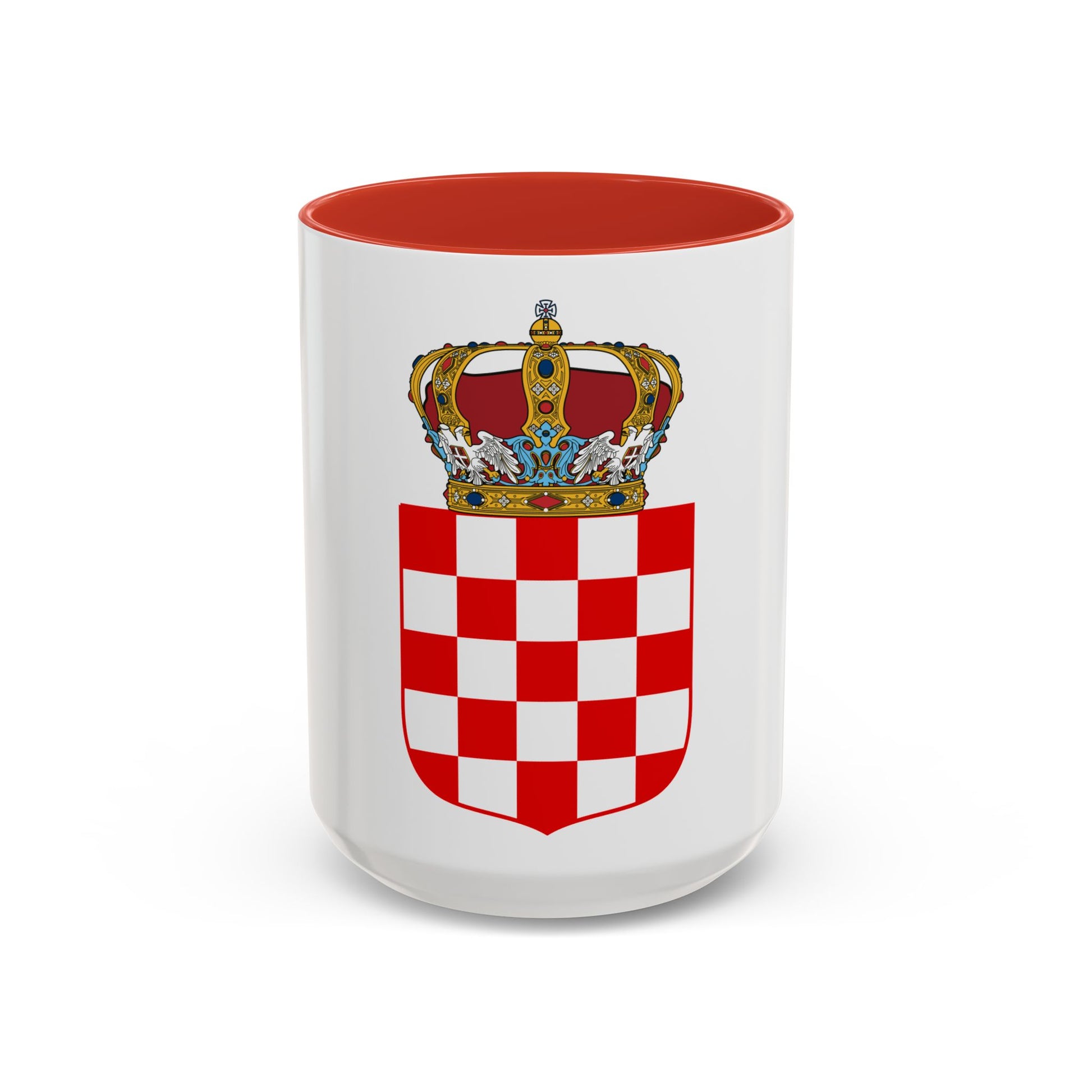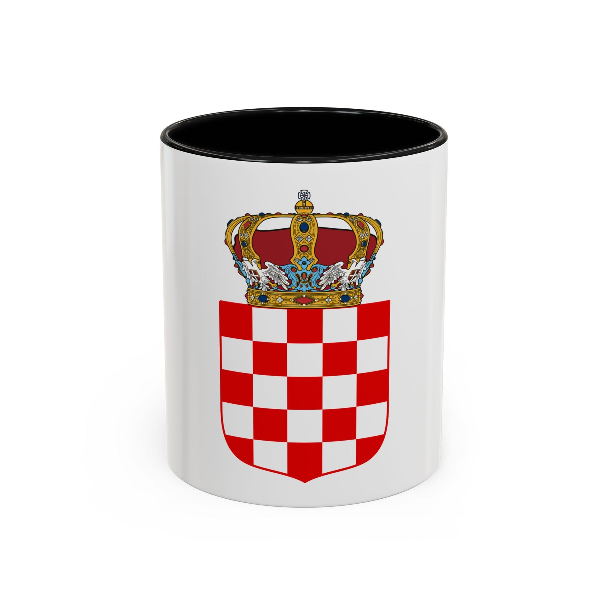 Step back in time with our Coat of Arms of the Banate of Croatia Accent Coffee Mug. This distinctive design showcases a historical emblem that was used during the Middle Ages, symbolizing power and tradition. The Banate of Croatia's coat of arms is adorned with a shield featuring three checkerboard segments in red and white, with the St. George Cross in blue at the center.