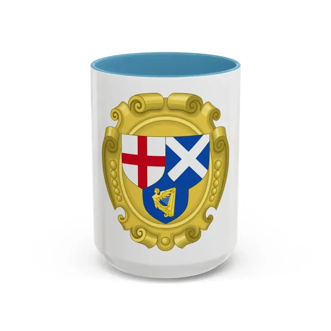 Step back in time with this unique Accent Coffee Mug featuring the Coat of Arms of the Commonwealth of England, Scotland, and Ireland. This mug is adorned with a historic representation of the unified symbols of these three significant nations, offering a daily reminder of their rich history and shared heritage. The intricate design showcases the Tudor rose for England, the lion rampant for Scotland, and the harp for Ireland, all carefully crafted to create an aesthetically pleasing and educational piece of drinkware.