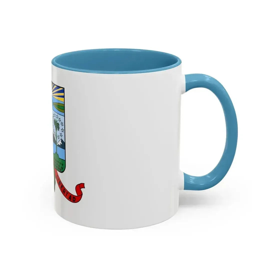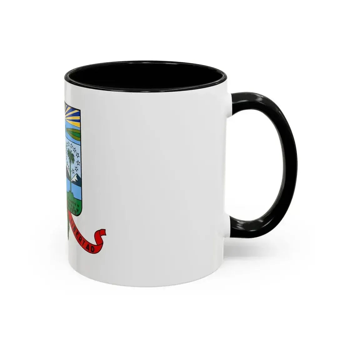 Step back in time with this Coat of Arms of the Cuban Filibuster Movement Accent Coffee Mug. This unique drinkware piece showcases a historical design that represents the Cuban Filibuster Movement, a group of Cubans and foreigners who fought for Cuba's independence during the 19th century. The detailed artwork on this mug illustrates the movement's symbolic emblems and colors, offering a glimpse into the rich history of Cuba's struggle for freedom.