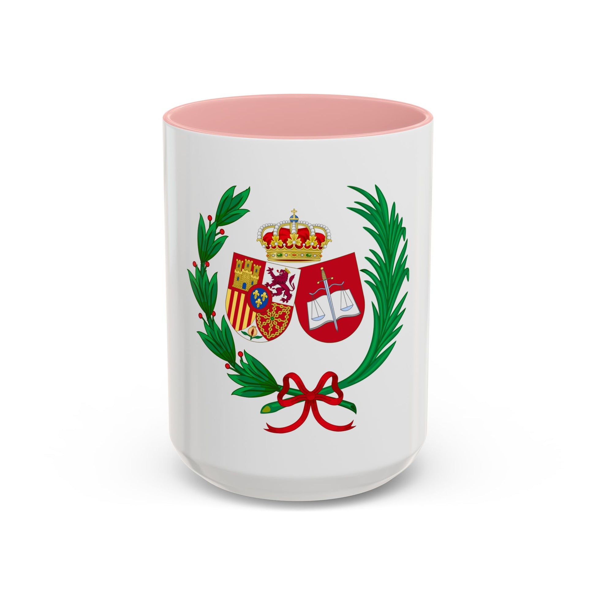 Step into a world of legal heritage with our Accent Coffee Mug featuring the Coat of Arms of the General Council of Spanish Solicitors. This design is a replica of the official heraldry that symbolizes the integrity, wisdom, and unity of the Spanish legal profession. The coat of arms showcases intricate details such as shields, emblems, and banners, each element holding historical significance within the Spanish legal system.