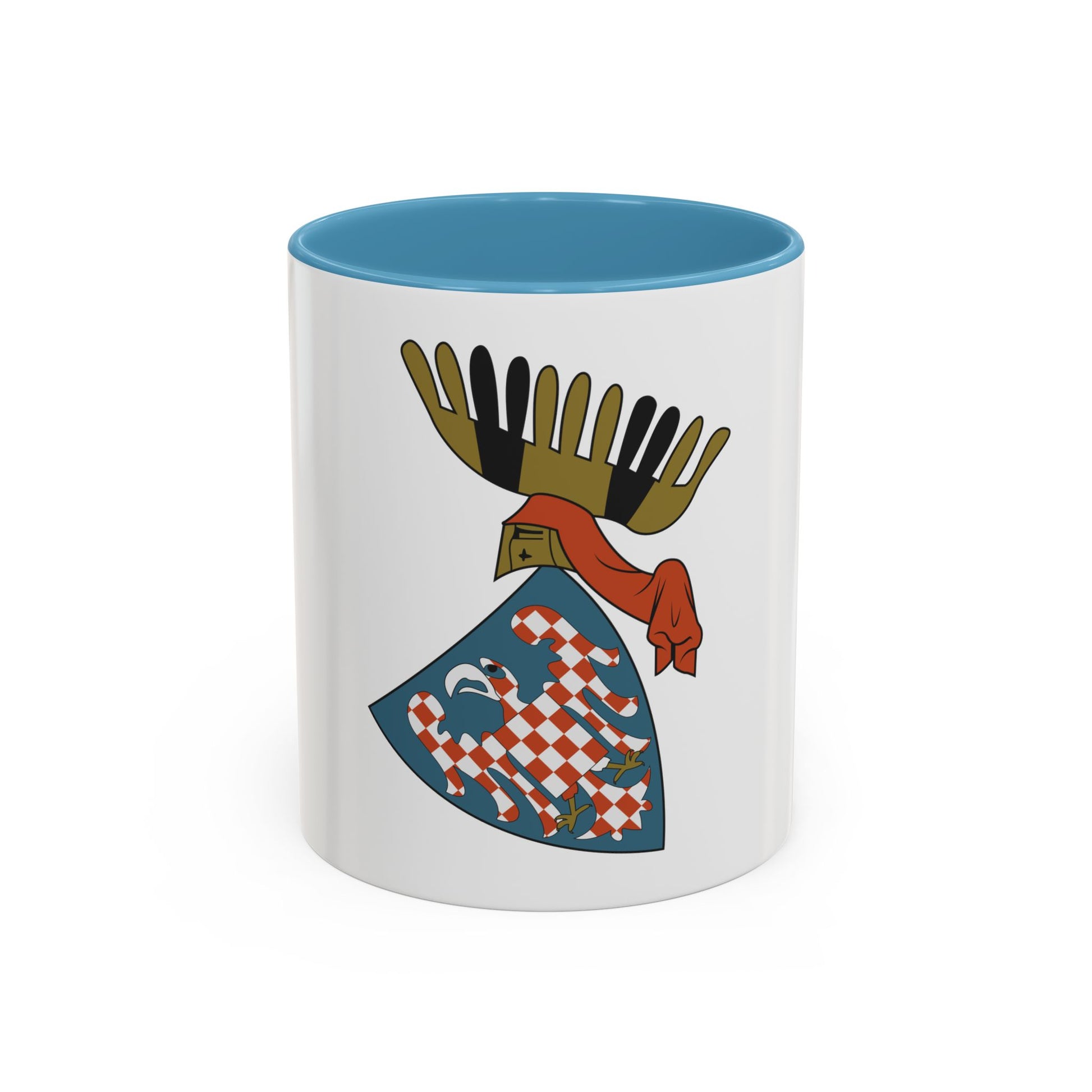 Step back in time with our "Accent Coffee Mug: Coat of Arms of the Margraviate of Moravia (Wenceslaus II)" design. This mug features an exquisite recreation of the historic coat of arms from the region governed by Wenceslaus II, the Margrave of Moravia during the 13th century. The design showcases the symbols significant to the Margraviate, including a lion passant guardant and a shield adorned with a checkerboard pattern. If you are a history enthusiast or have an affinity for European heraldry, this mug is an excellent conversation starter that adds a touch of medieval charm to your table setting.