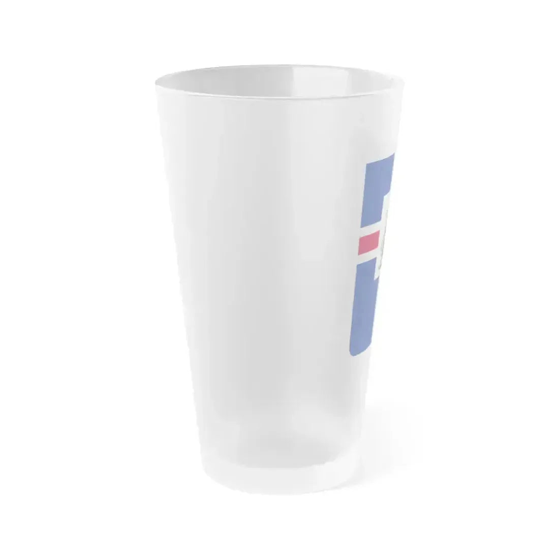 Frosted pint glass (16 oz / ≈0.47 L) with a soft matte finish and semi-translucent, one-sided print. Tough enough for bar and restaurant use, dishwasher safe, and BPA-free — a modern take on classic pintware.