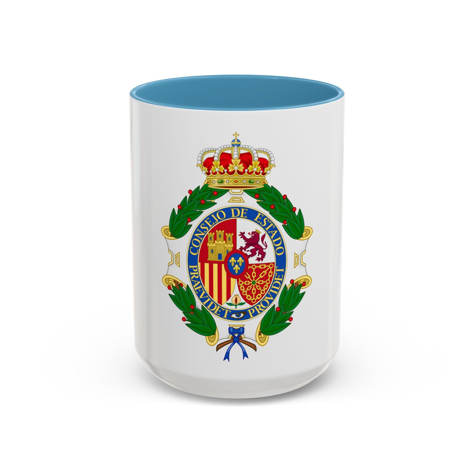 Step back in time with our "Coat of Arms of the Spanish Council of State" Accent Coffee Mug. This beautifully designed mug showcases an authentic reproduction of the historical coat of arms from Spain's Council of State. Crafted for those who appreciate history, this piece is a great conversation starter and a stunning addition to any coffee or tableware collection.