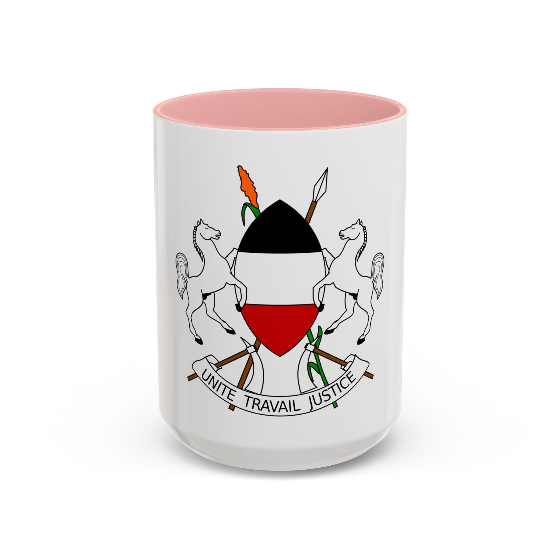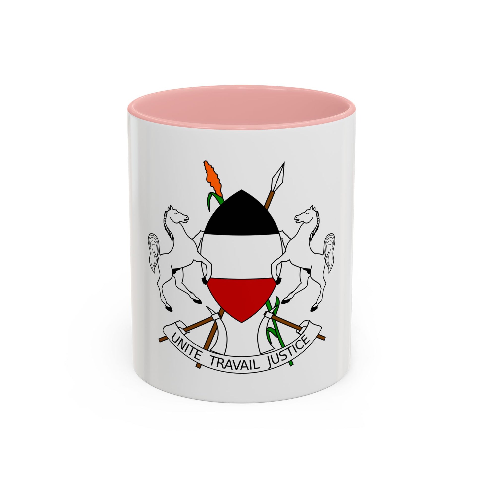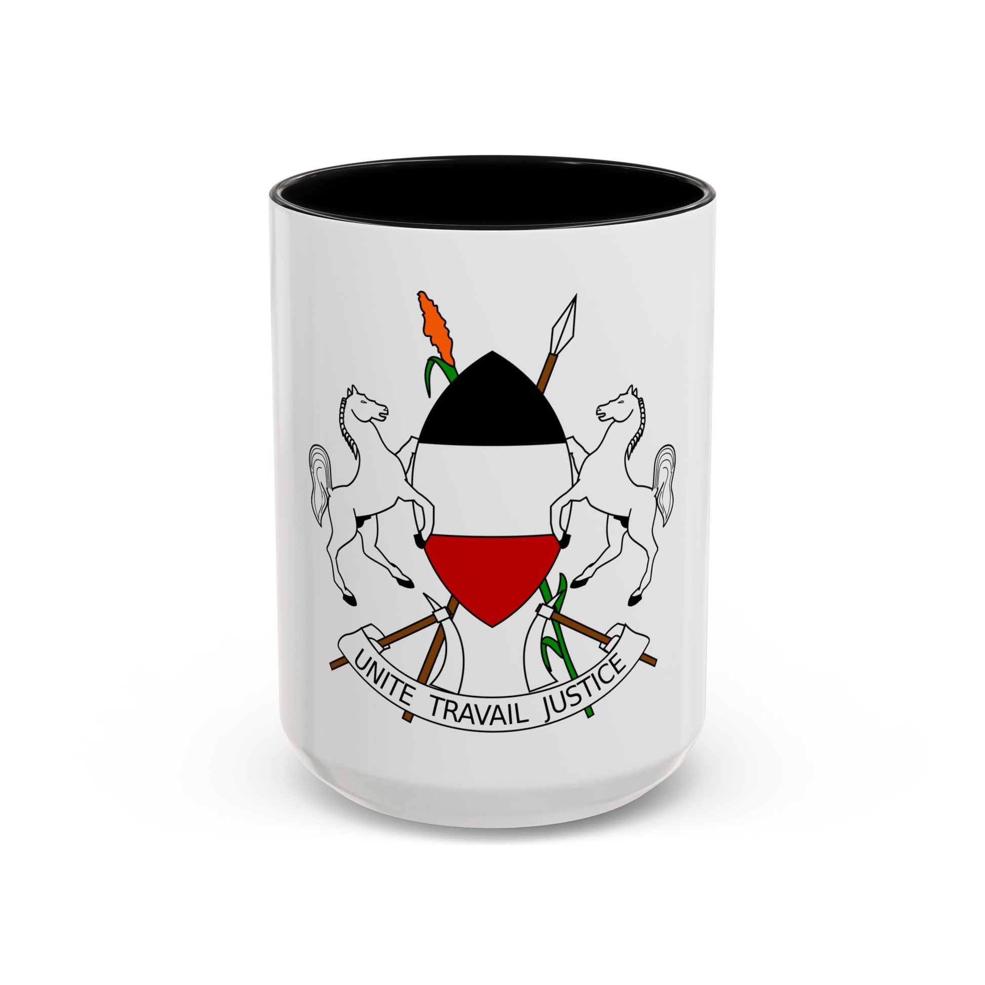 Imagine starting your day sipping coffee from this distinctive mug, sharing stories about the intriguing history of Upper Volta. Whether you're a collector, an aficionado of world heraldry, or simply someone who appreciates the charm of the past, our Accent Coffee Mug featuring the Coat of Arms of Upper Volta (1967-1984) is sure to capture your interest. Perfect for anyone who appreciates unique and cool drinkware.