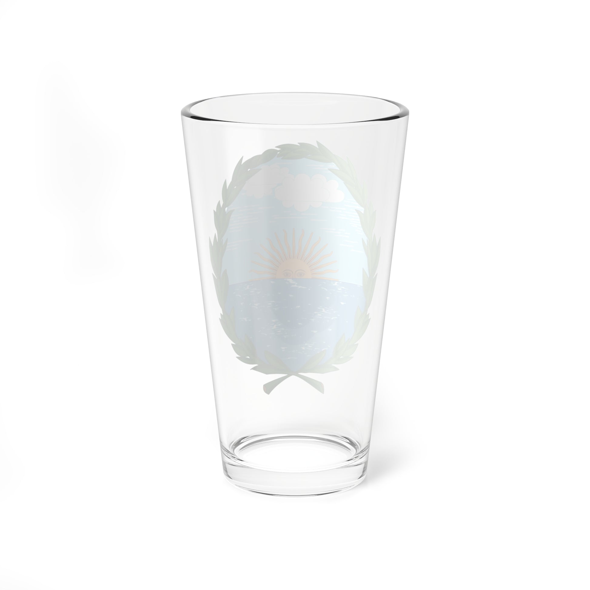 This pint glass showcases the official Coat of Arms of Vicente López, a municipality in Buenos Aires Province, Argentina. The design, originating in 1933, is a striking visual representation of local and national identity.