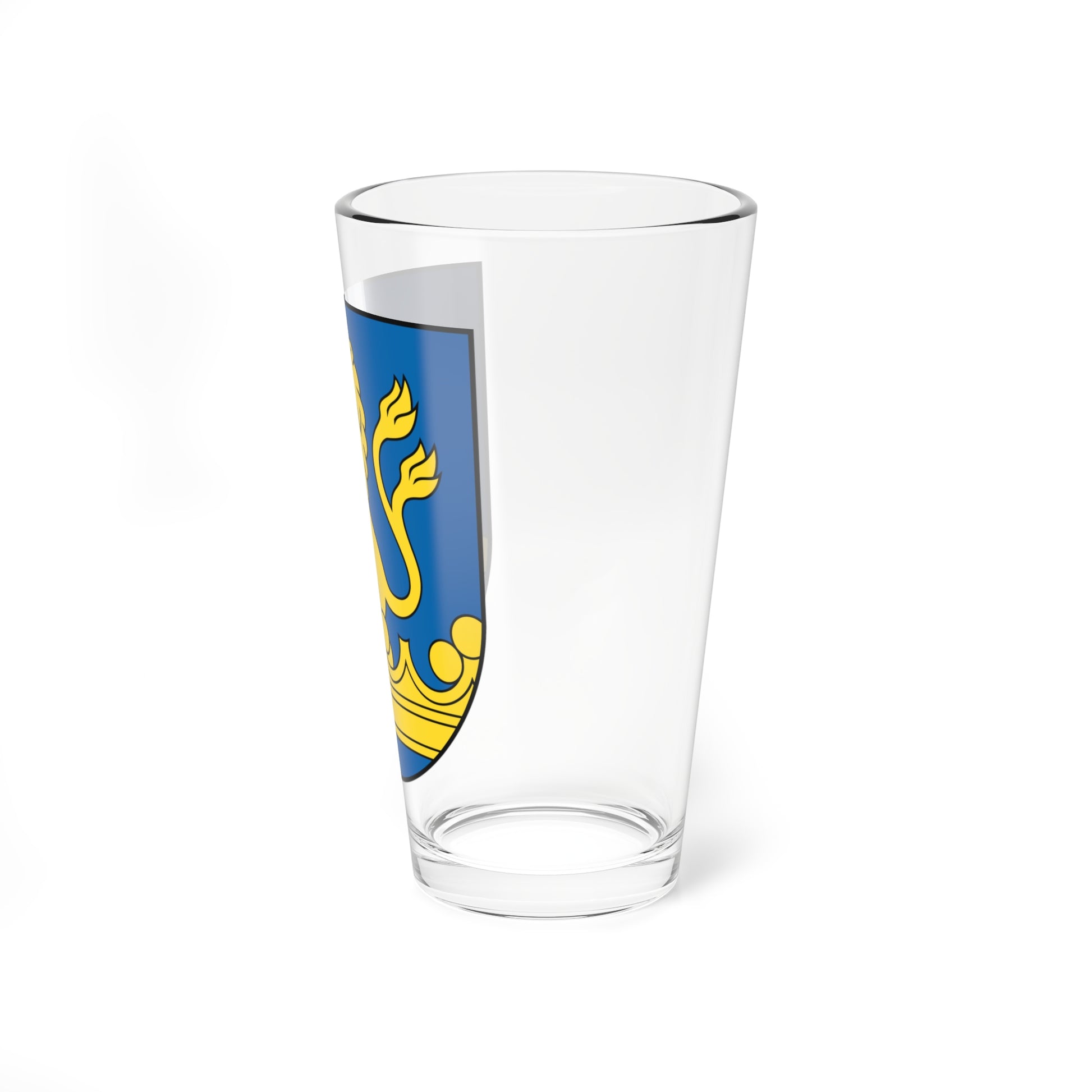The artwork emblazoned on this pint glass presents the historic coat of arms of Vranov nad Topľou, a testament to the town's rich heritage. The design is a captivating example of heraldic artistry, rendered with precise detail and symbolic significance.