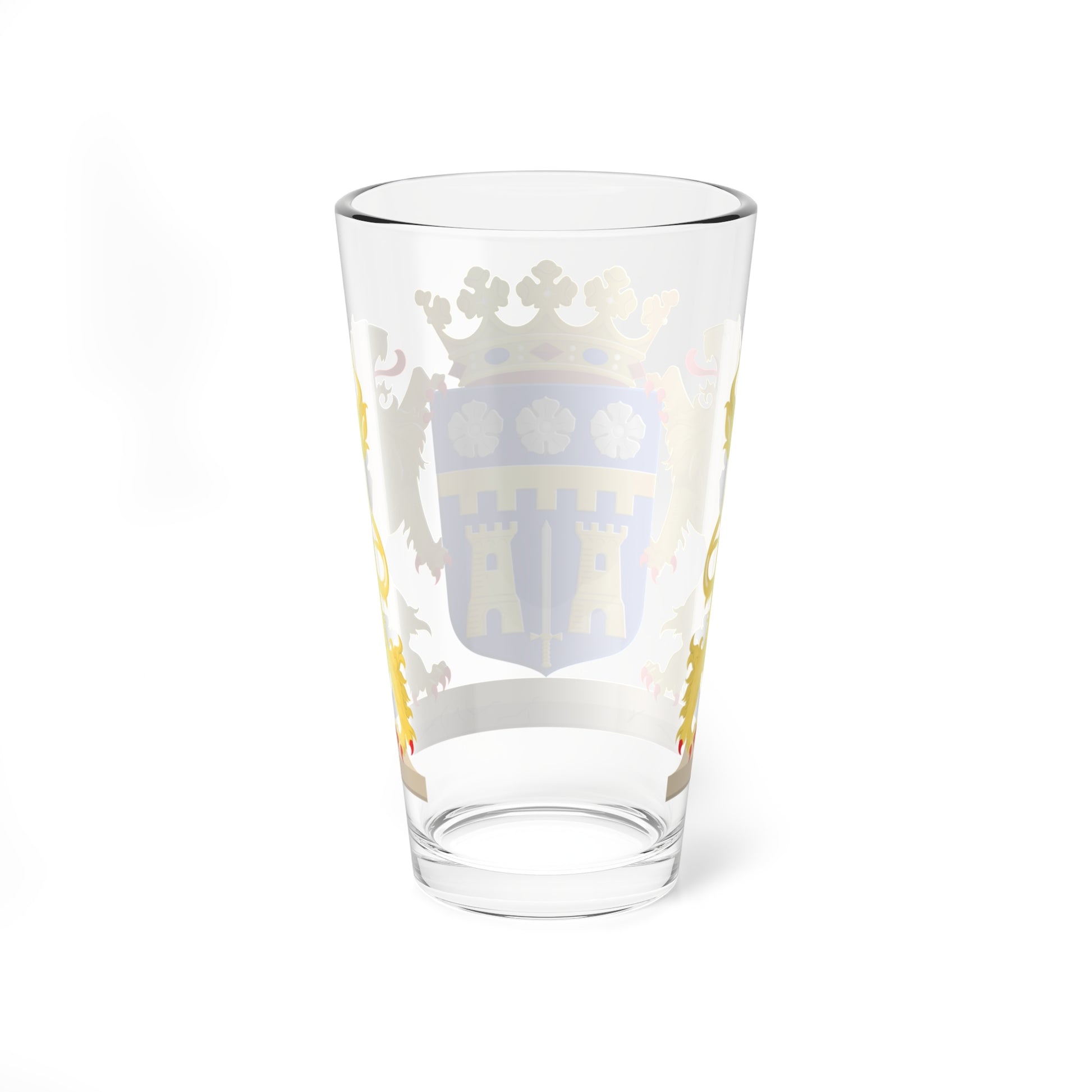 This pint glass showcases the historic coat of arms of Zaltbommel, a Dutch municipality steeped in history.