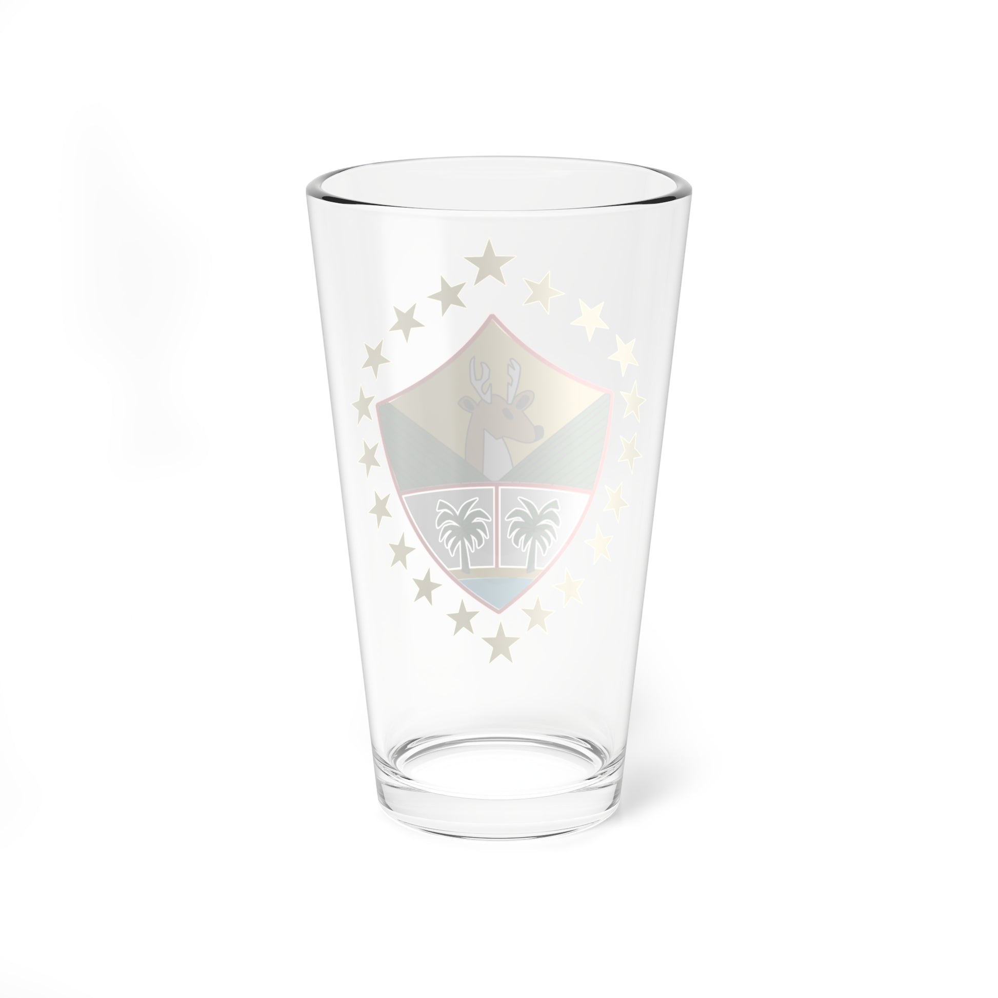 This pint glass showcases the official coat of arms of the Suchitepéquez Department in Guatemala, a vibrant emblem steeped in regional history and significance. The design, as seen on the department's flag and official documents, is a symbol of civic pride and local identity.