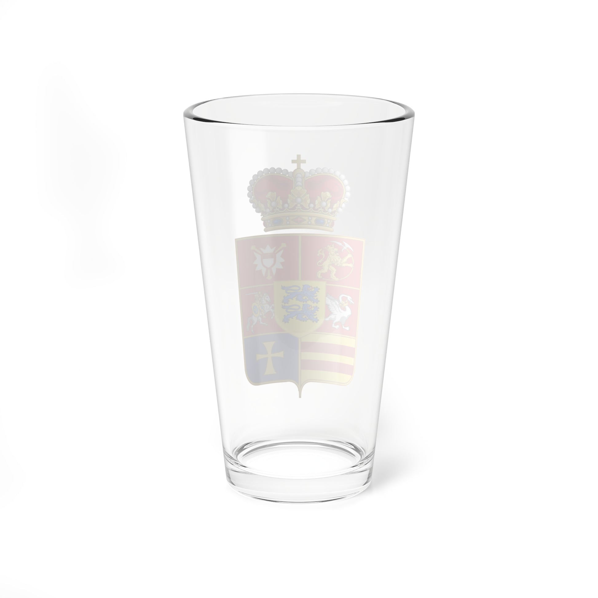 This pint glass features a captivating rendering of the historical coat of arms of Frédéric IV, Duke of Holstein-Gottorp, reflecting his dual heritage and status.