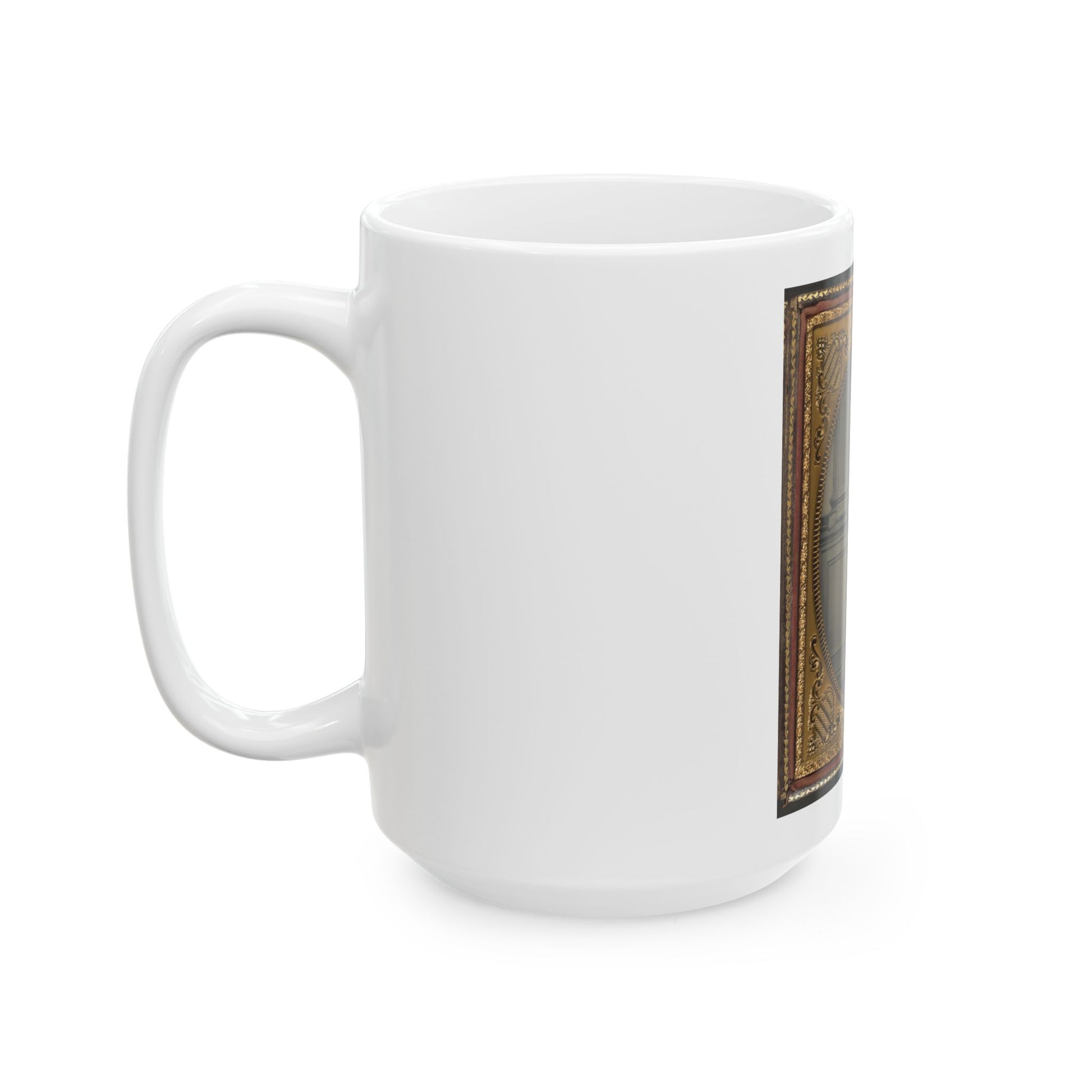 Step back in time with this unique coffee mug showcasing an intriguing design inspired by the U.S. Civil War. The central figure is Colonel Felix L. Price of Co. I, 14th Georgia Infantry Regiment, depicted in uniform complete with a CSA buckle. Surrounding him are open books, symbolizing knowledge and strategy – essential tools for any military leader. This design caters to history enthusiasts, particularly those with an affinity for the American Civil War era.