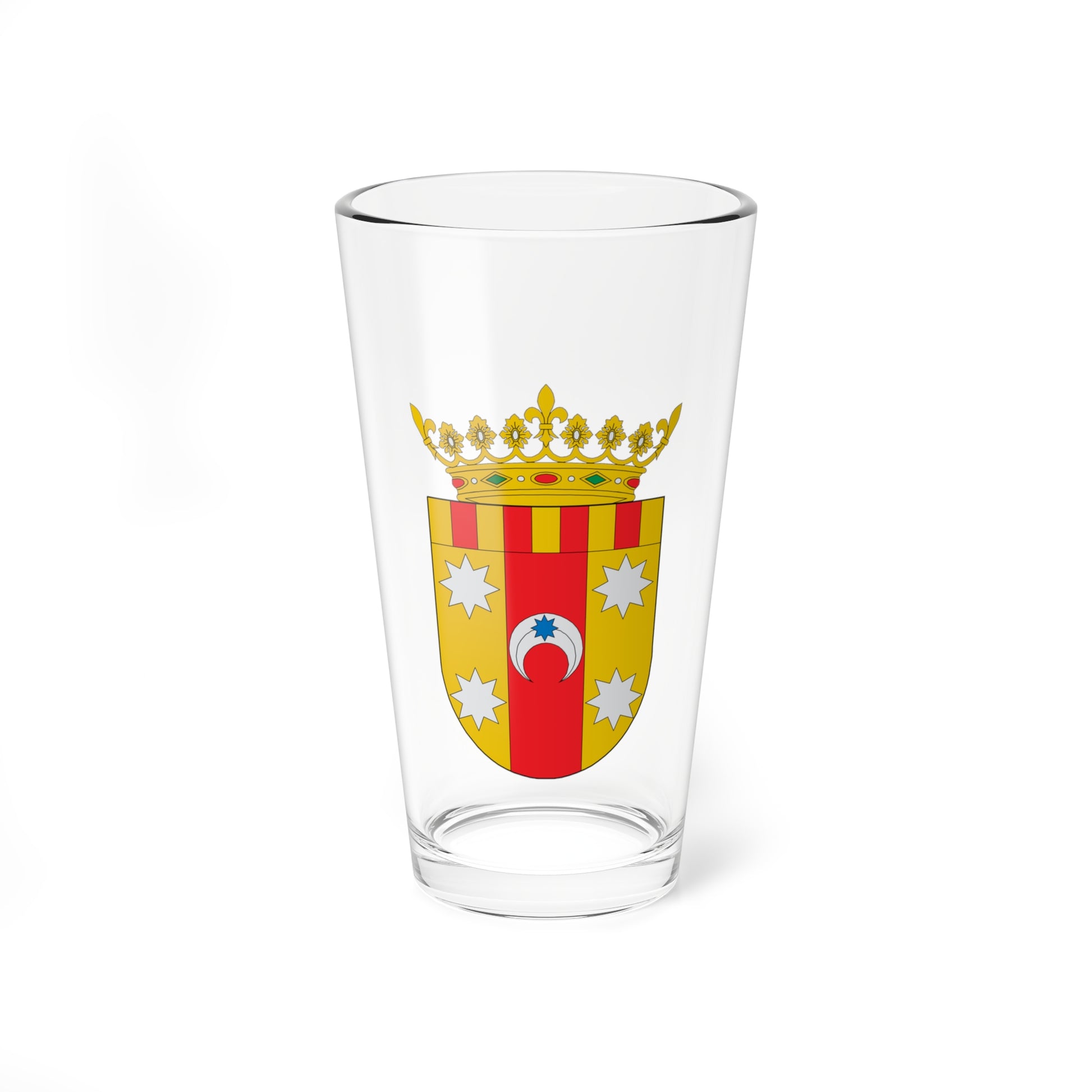 This pint glass showcases the officially recognized coat of arms of the Comarca de Aranda, a regional division in the province of Zaragoza, Spain. The design is a vibrant and symbolic representation of the region's history and identity.