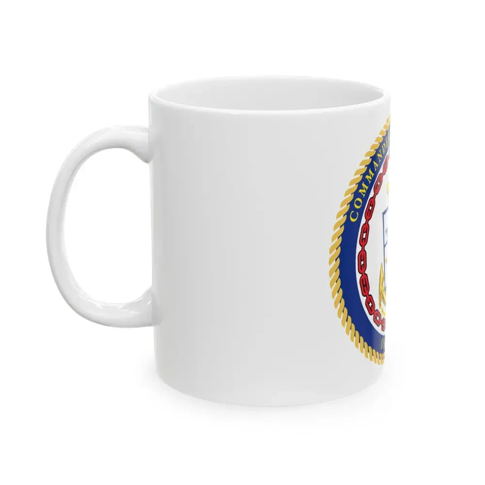 Step back in time with this Commander Fleet Activities Okinawa U.S. Navy-themed white coffee mug. This mug showcases a historically significant design that commemorates the naval activities during the Okinawa campaign. The graphic features elements such as navy vessels, aircraft, and landmarks that were integral to the operation, creating an evocative visual narrative for those who appreciate military history. Ideal for veterans, military enthusiasts, or anyone who appreciates unique and cool drinkware, this coffee mug is a perfect conversation starter for those with a passion for naval history.