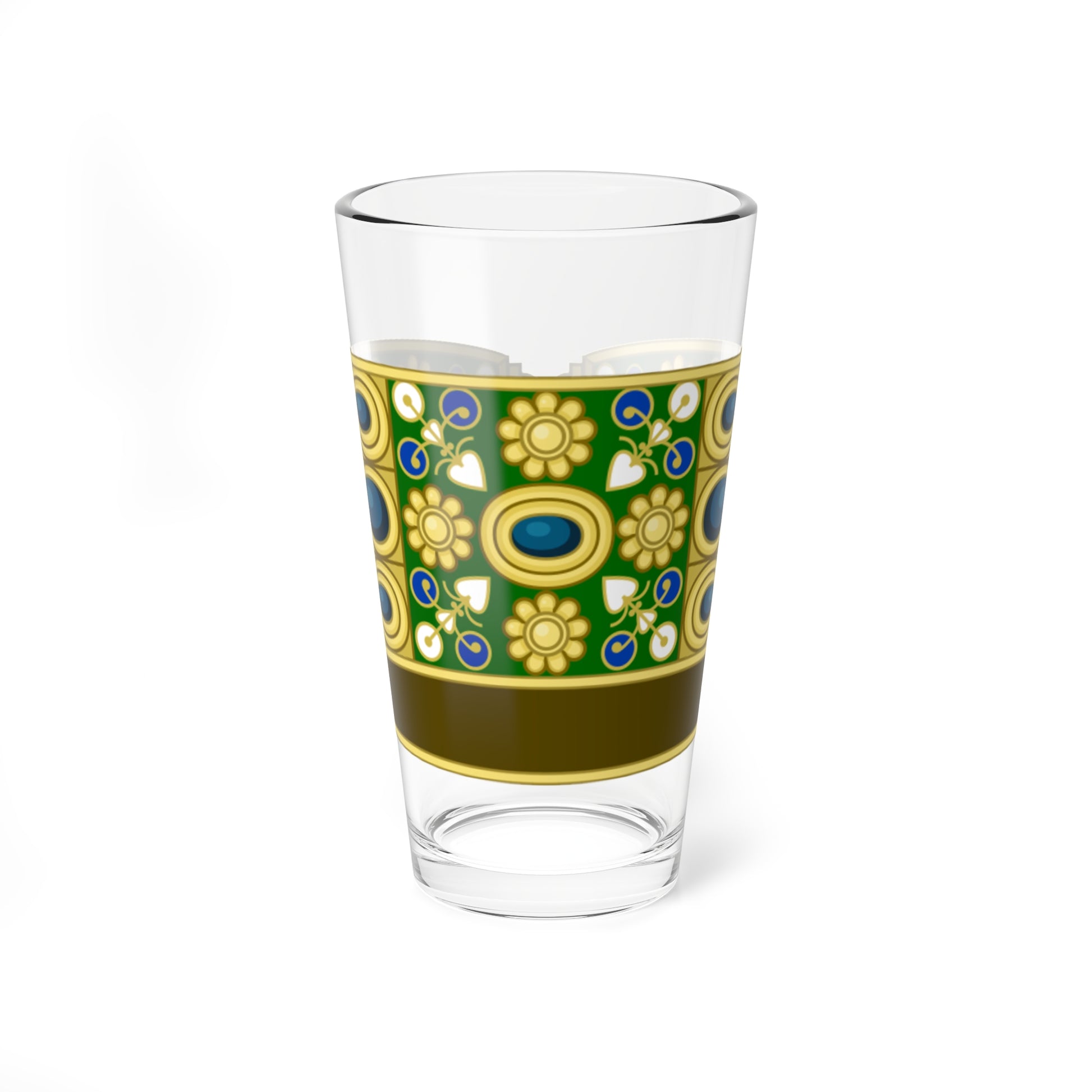 Raise a glass to history with this stunning pint glass, featuring a design inspired by the heraldry of Monza, Italy, and its most iconic symbol: the Corona Ferrea, or Iron Crown.