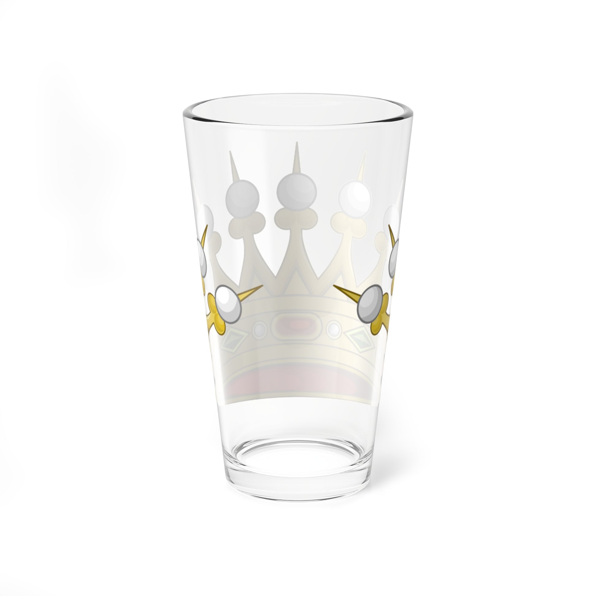 This pint glass features a striking design inspired by the "Corona normale di conte italiano variante," the variant form of the normal coronet used by Counts in Italian heraldry. The artwork directly references the visual elements of this prestigious symbol.