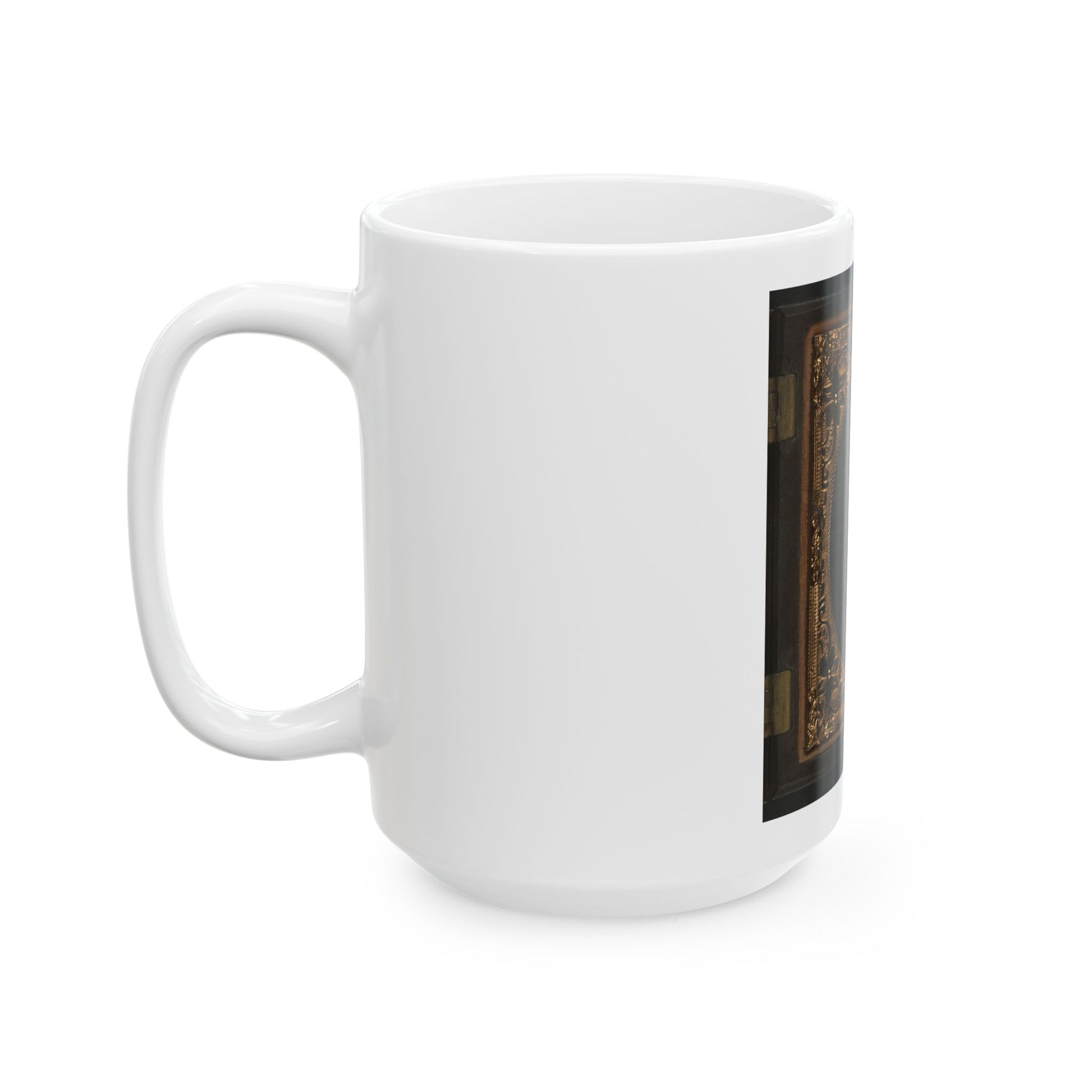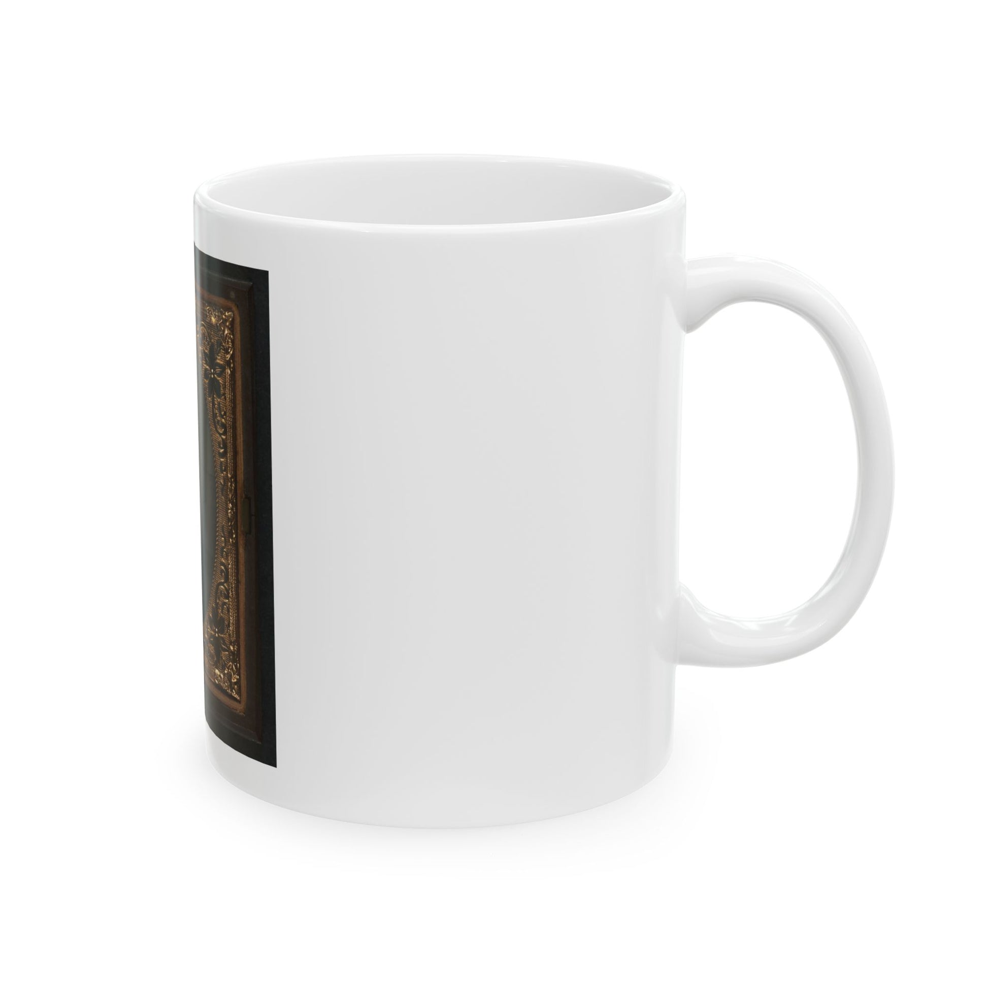 This white coffee mug features a historical design inspired by Corporal Sidney S. Goodridge of Company K, 20th Massachusetts Infantry Regiment and Company B, during the U.S. Civil War near Edwards Ferry. The artwork depicts a realistic rendition of a soldier in uniform, evoking a sense of the era's military precision and resilience. History enthusiasts, particularly those with an interest in the American Civil War, will appreciate this unique piece as a thoughtful addition to their collection or daily coffee routine.