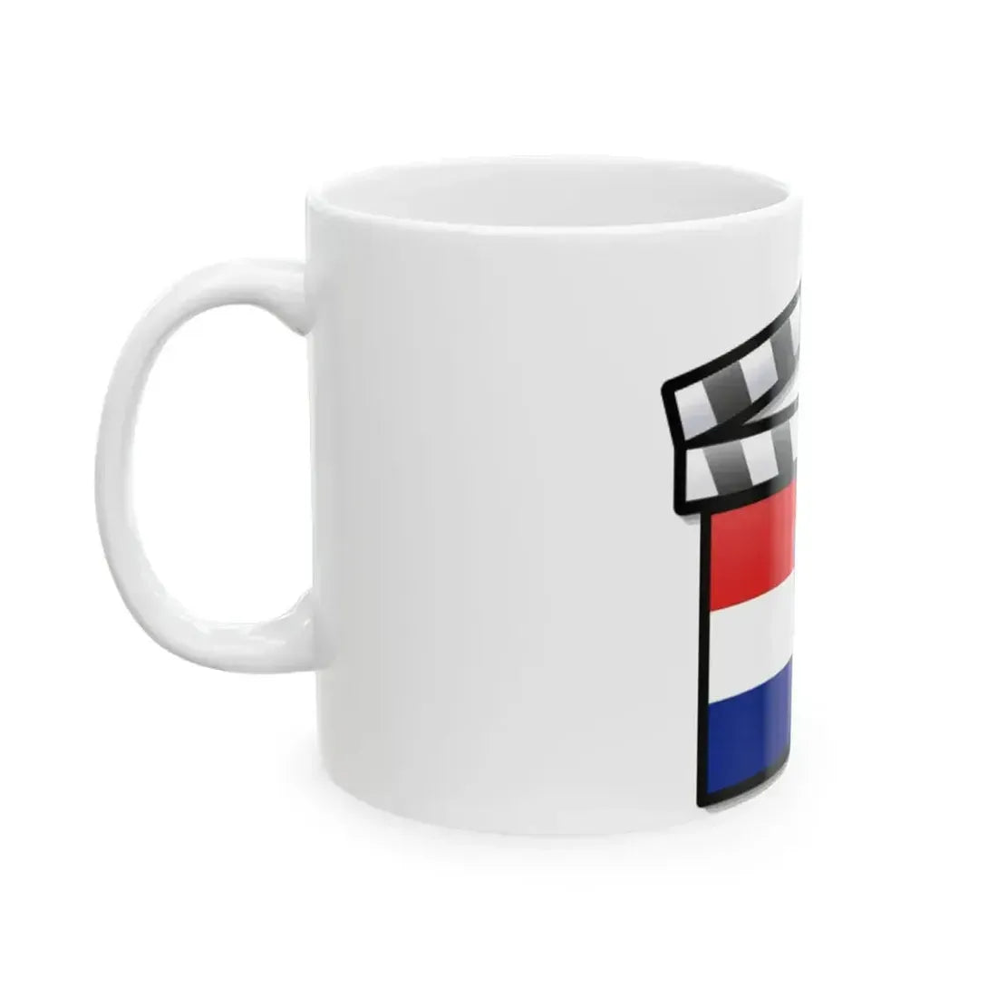 The Croatia film clapperboard graphic adds an authentic touch to this stylish mug. The white background provides a clean and modern look that complements any kitchen setup. This coffee mug not only serves your favorite beverage but also brings a touch of the movie industry into your daily routine. Perfect for anyone who appreciates unique and cool drinkware.