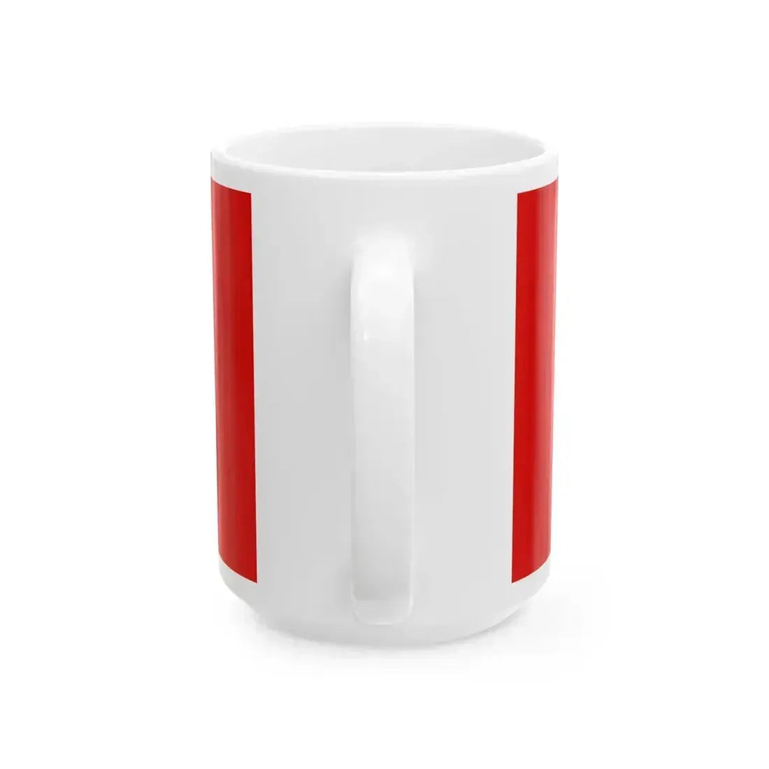 Sturdy white ceramic mugs available in 11 oz (≈330 ml) and 15 oz (≈440 ml), with a glossy finish and comfortable C-handle — microwave and dishwasher safe, and made from lead- and BPA-free materials.