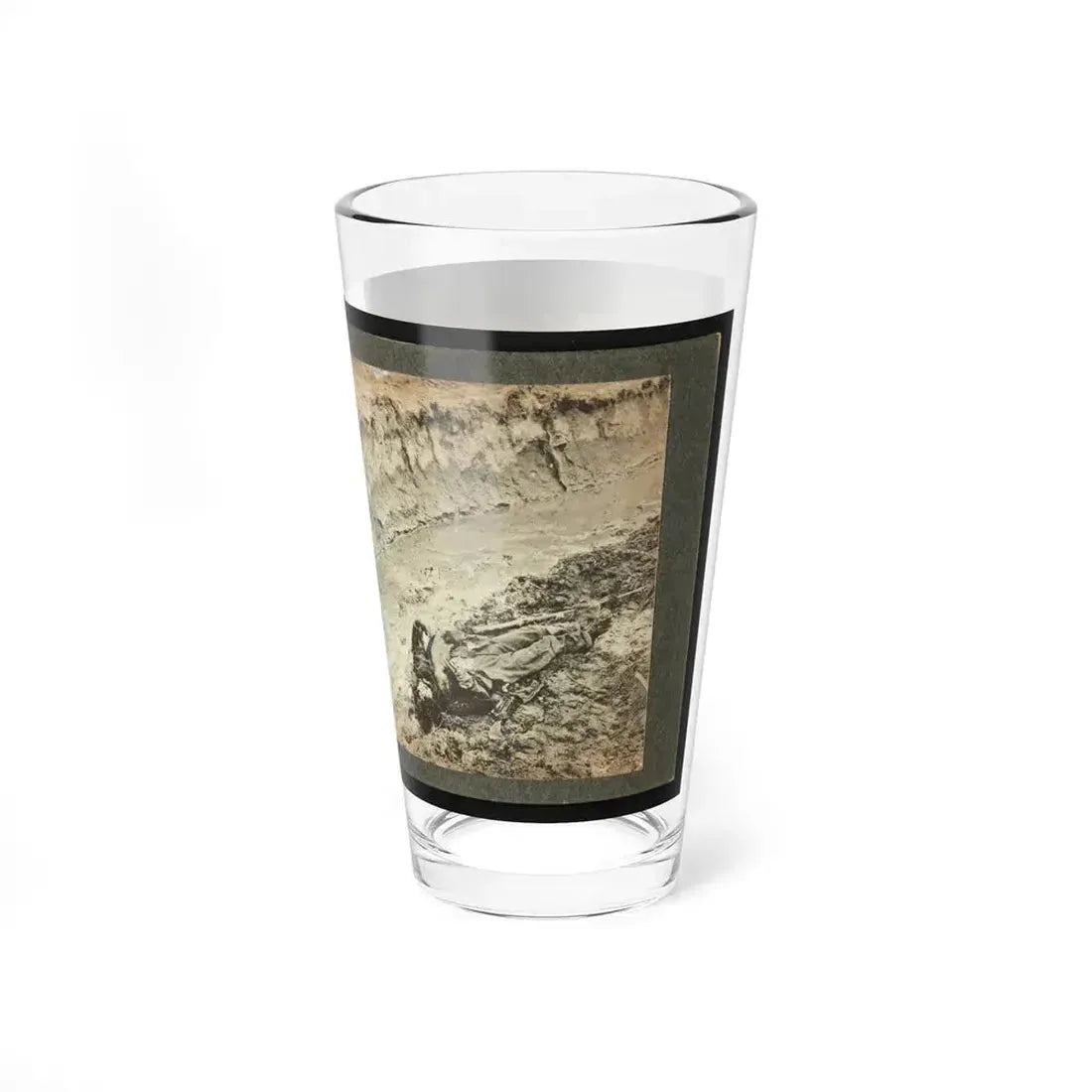 Each glass is crafted with precision and care, making it a reliable choice for daily use as well as special occasions. Its robust construction ensures durability, allowing you to enjoy your favorite beverage without worrying about breakage. The design on the glass adds a touch of history and intrigue to any setting, making it an ideal conversation starter at gatherings or events. Perfect for anyone who appreciates unique and cool drinkware, this Dead Confederate Soldier In The Trenches Of Fort Mahone, Petersburg, Virginia (U.S. Civil War) Pint Glass is more than just a glass - it's a piece of history you can hold in your hands.